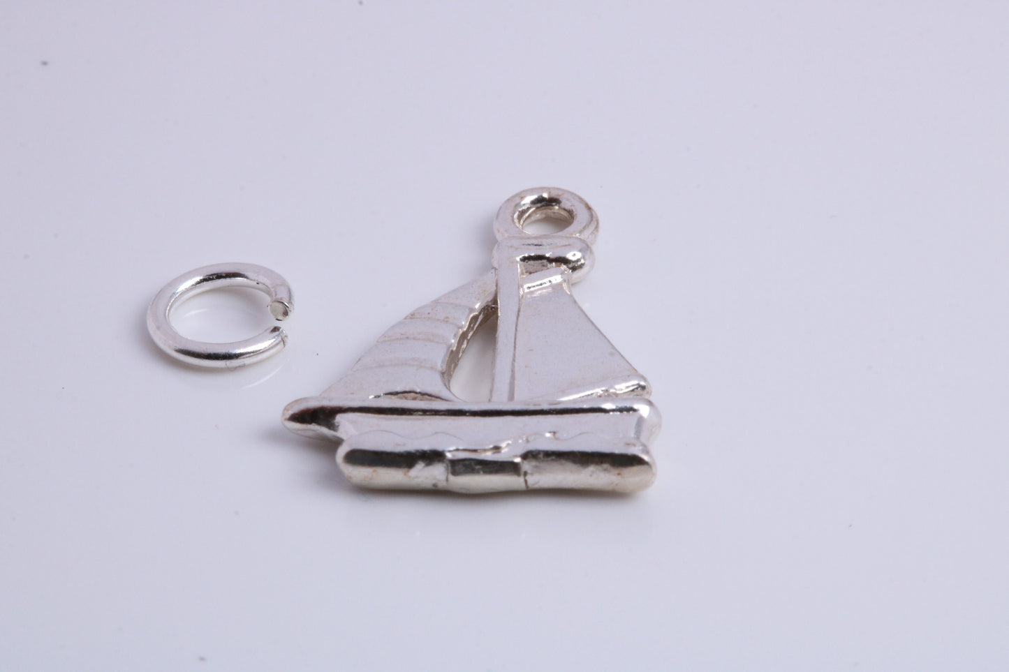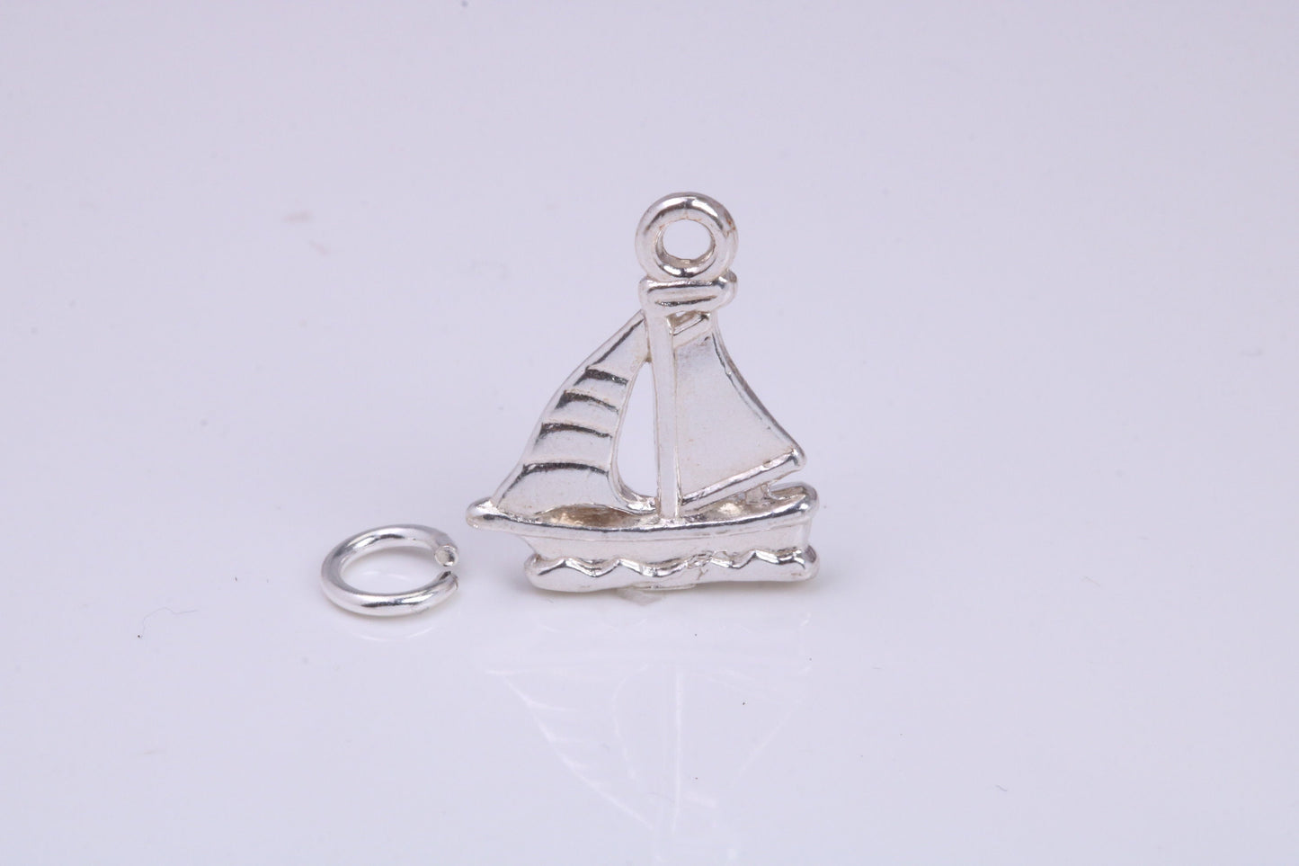Sailing Boat Charm, Traditional Charm, Made from Solid 925 Grade Sterling Silver, Complete with Attachment Link
