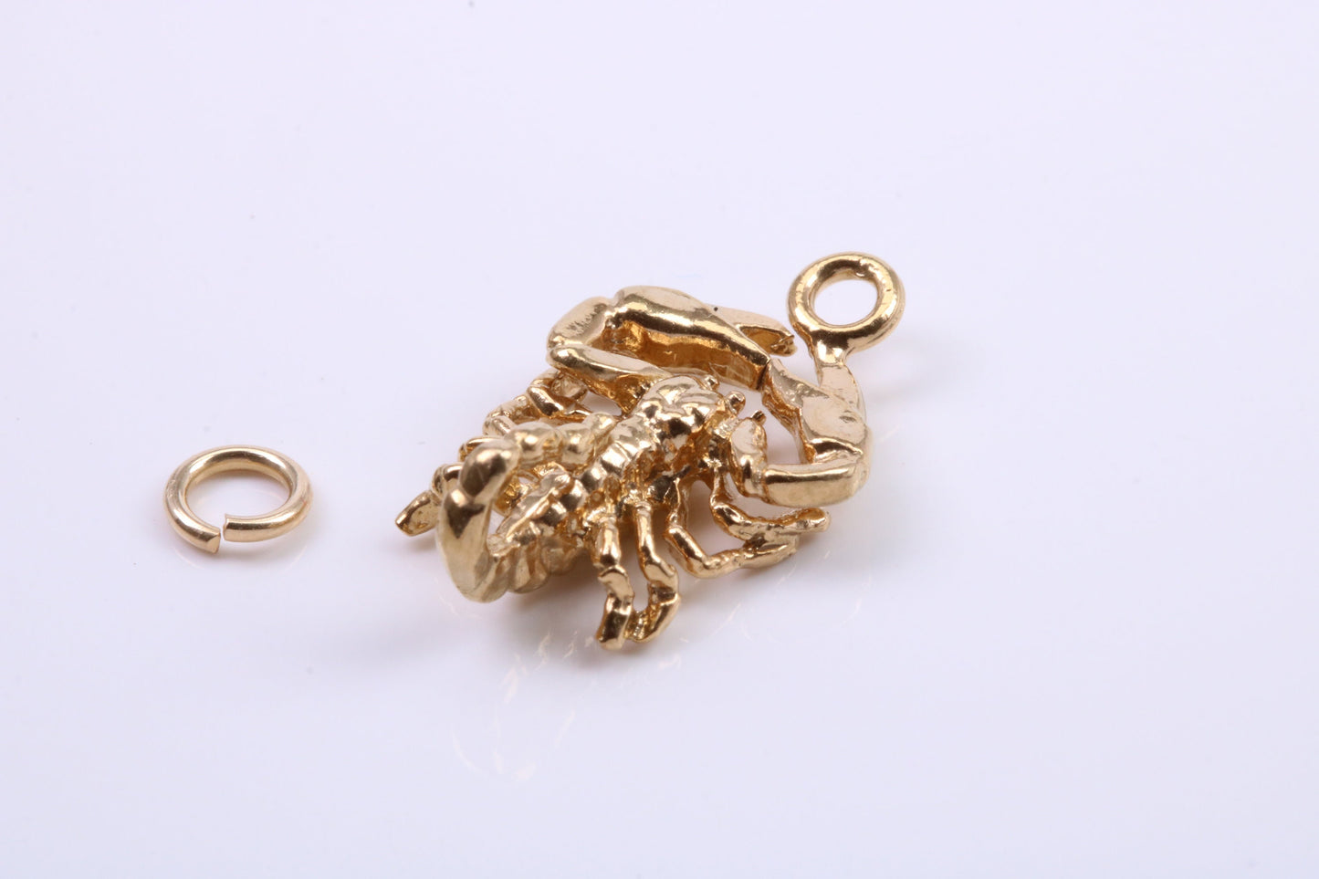 Scorpio Zodiac Sign Charm, Traditional Charm, Made from Solid 9ct Yellow Gold, British Hallmarked, Complete with Attachment Link
