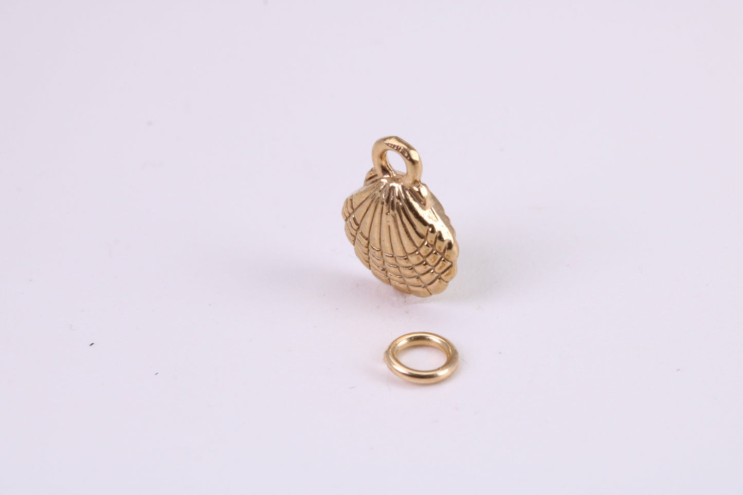 Sea Shell Charm, Traditional Charm, Made from Solid Yellow Gold, British Hallmarked, Complete with Attachment Link