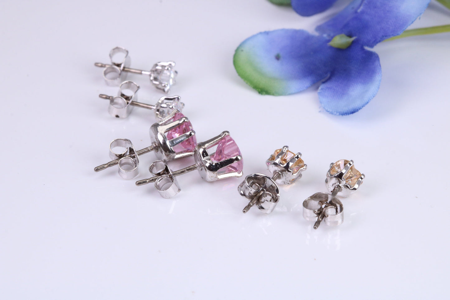 Set of Three Love Heart Stud Cubic Zirconia set Earrings, Very Dressy, Made from Solid 925 Grade Sterling Silver