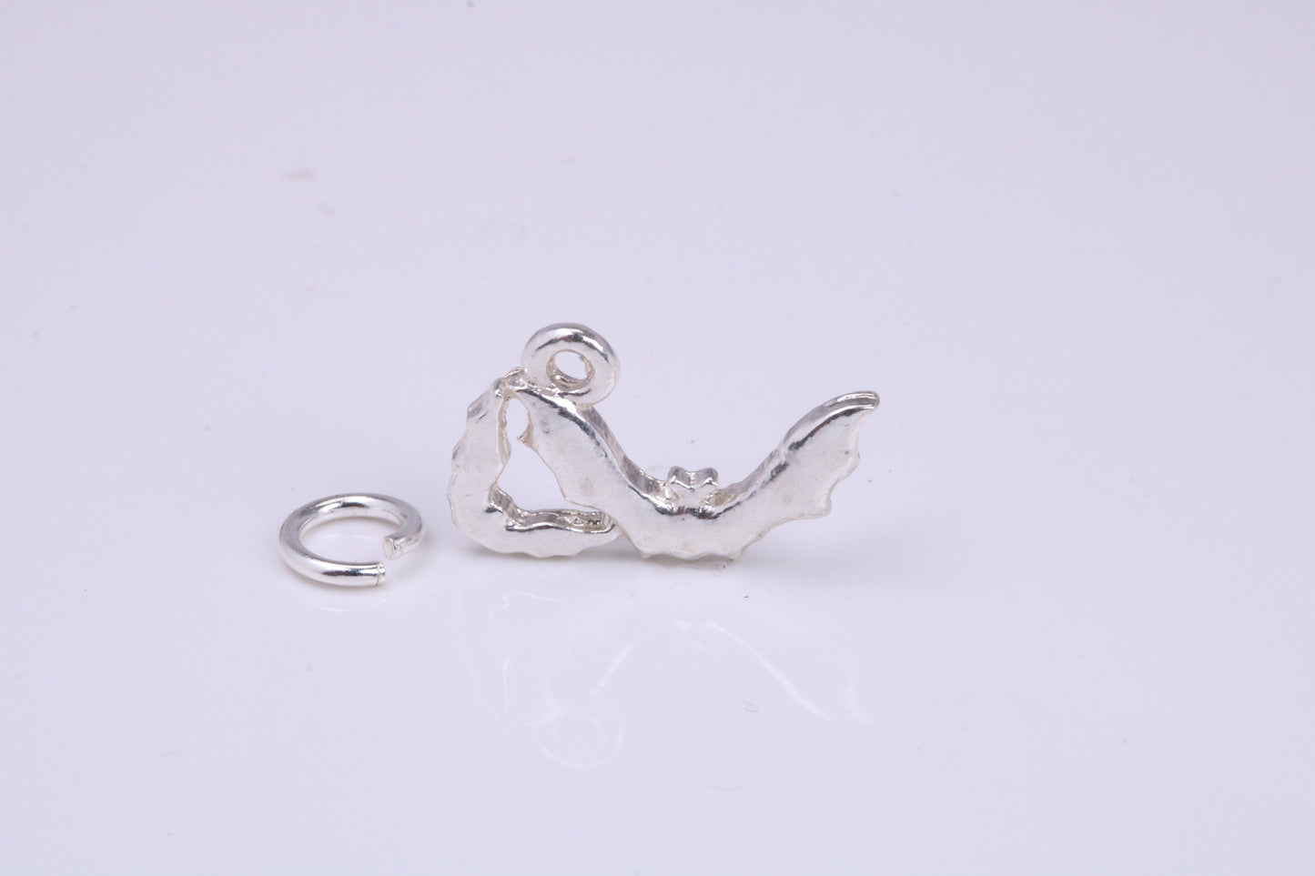 Shrimp Charm, Traditional Charm, Made from Solid 925 Grade Sterling Silver, Complete with Attachment Link