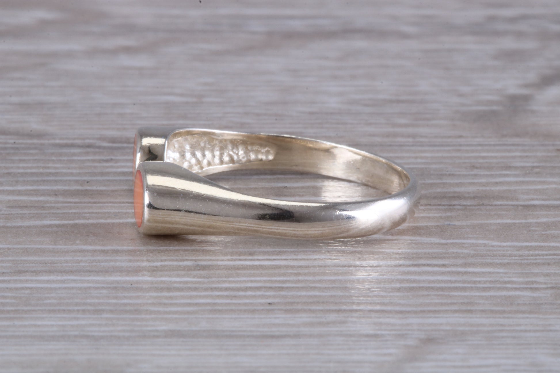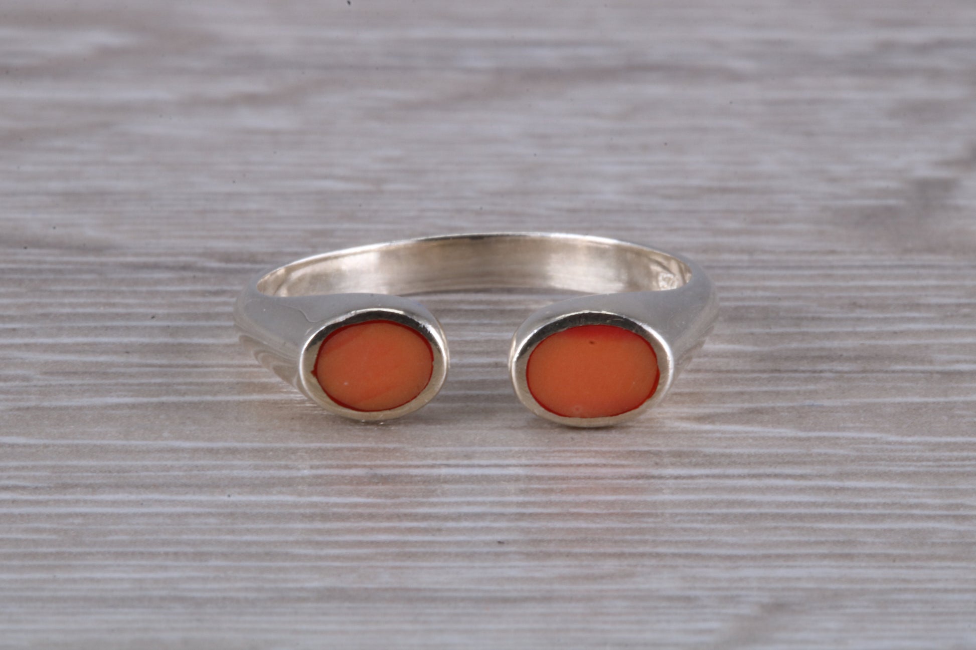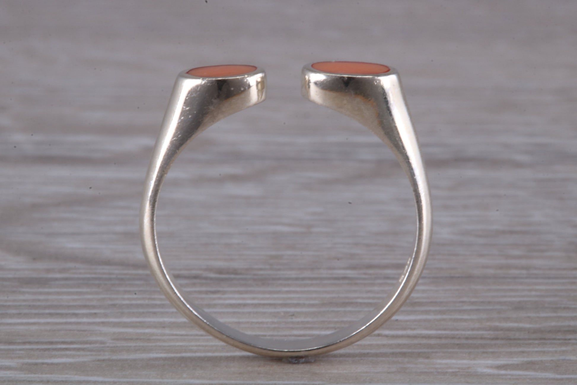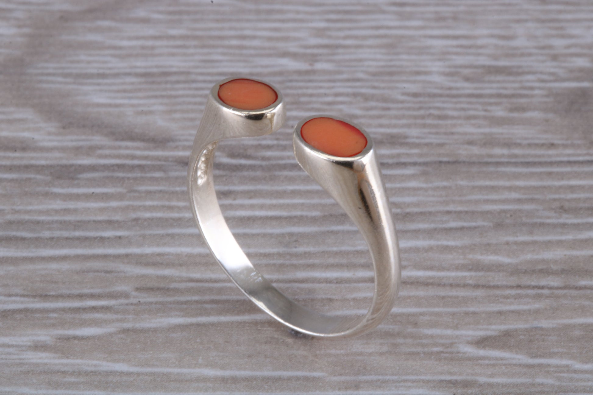 Silver Coral open ended ring, sterling silver with red coral inlay, suitable for all age groups, very unusual design