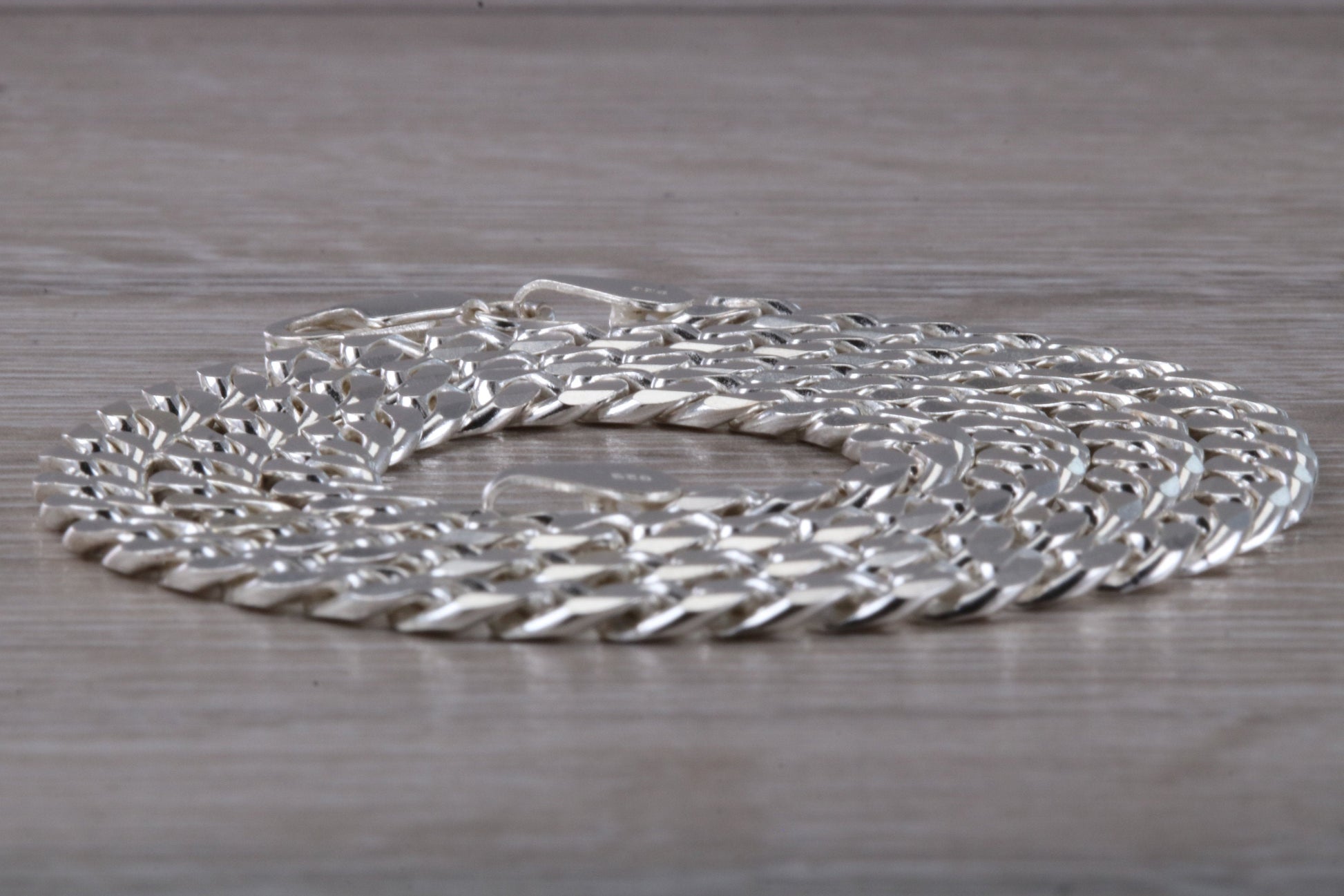 Diamond Cut Curb Chain. Silver chain with diamond cut links