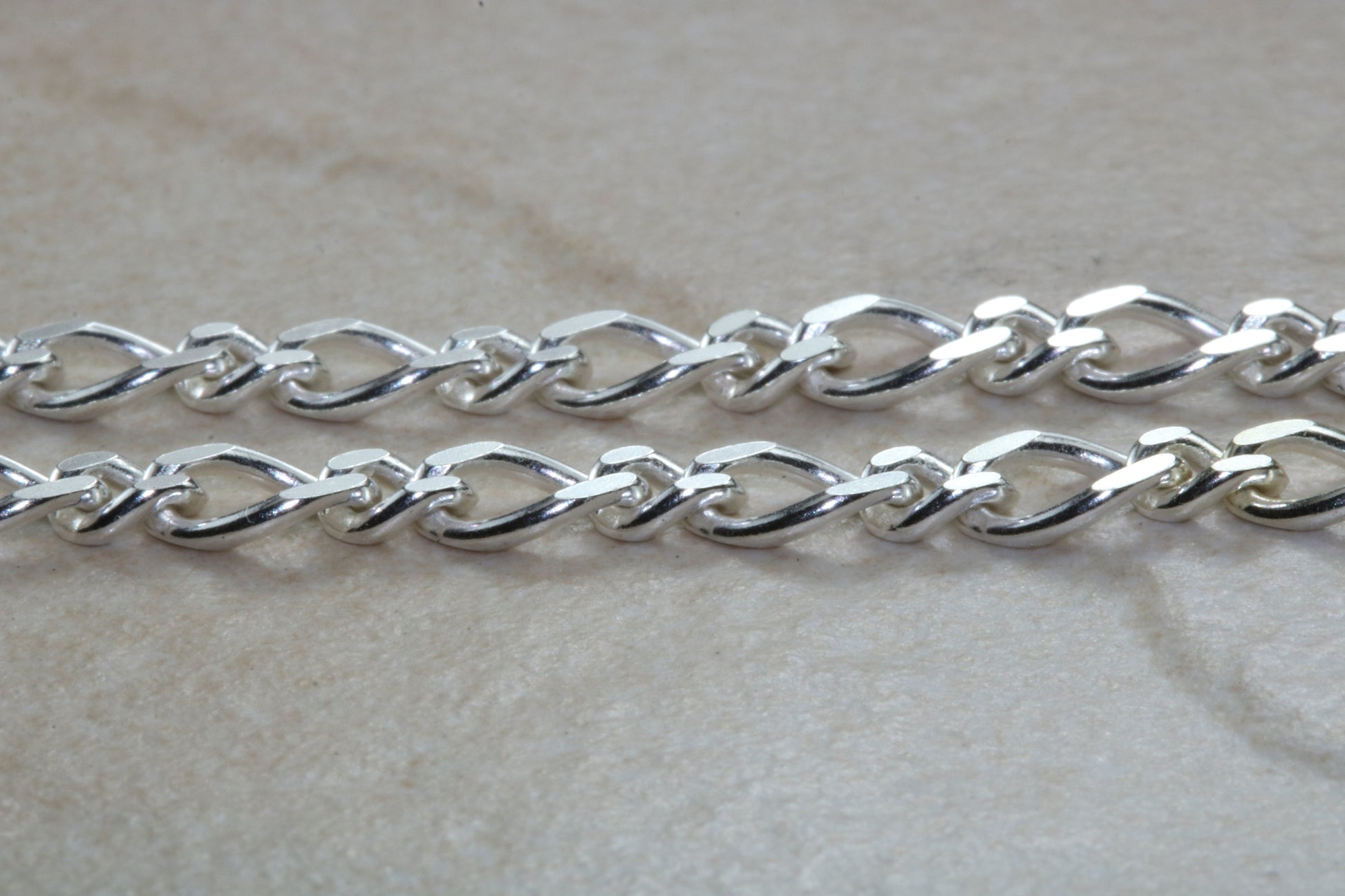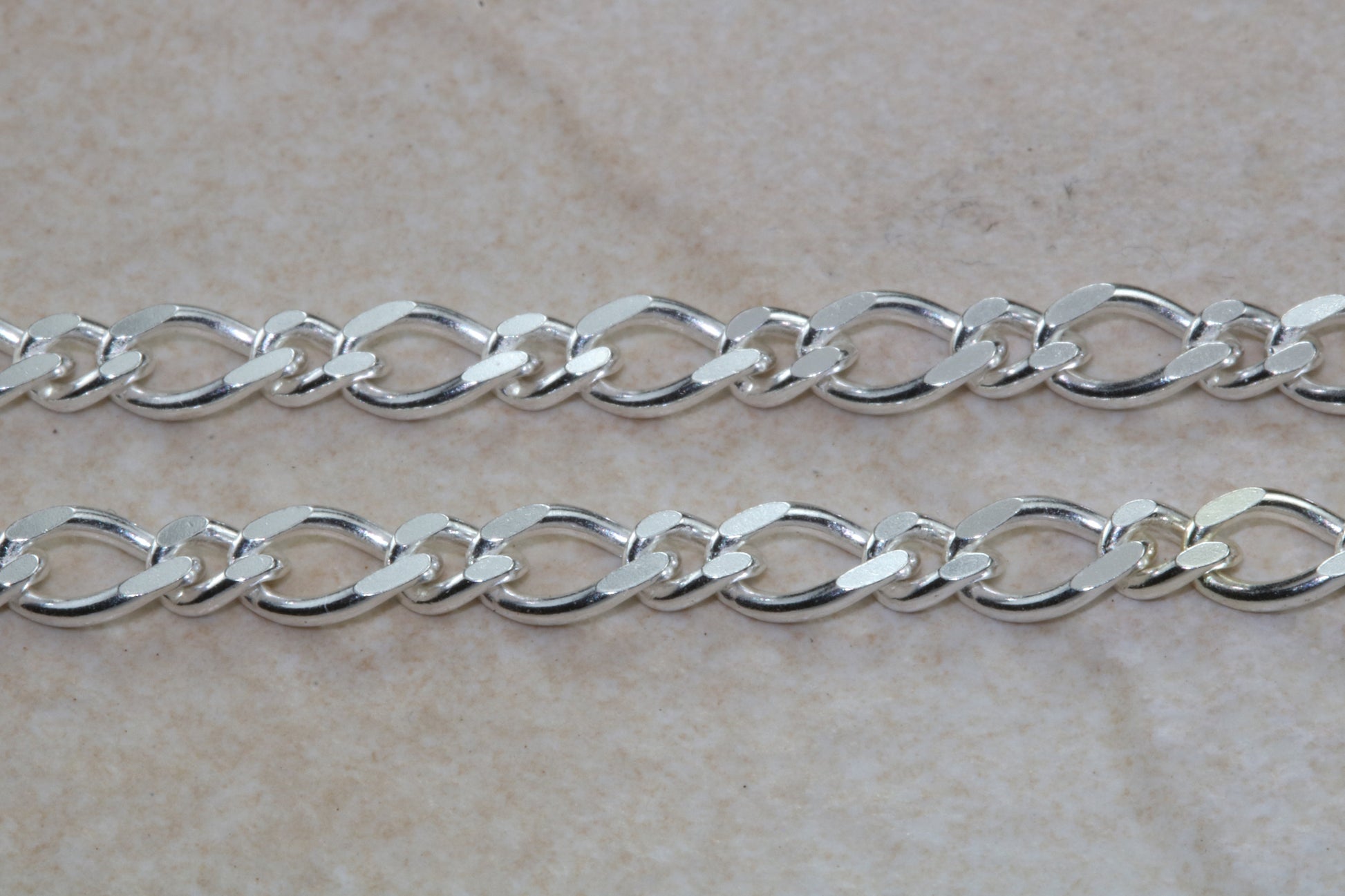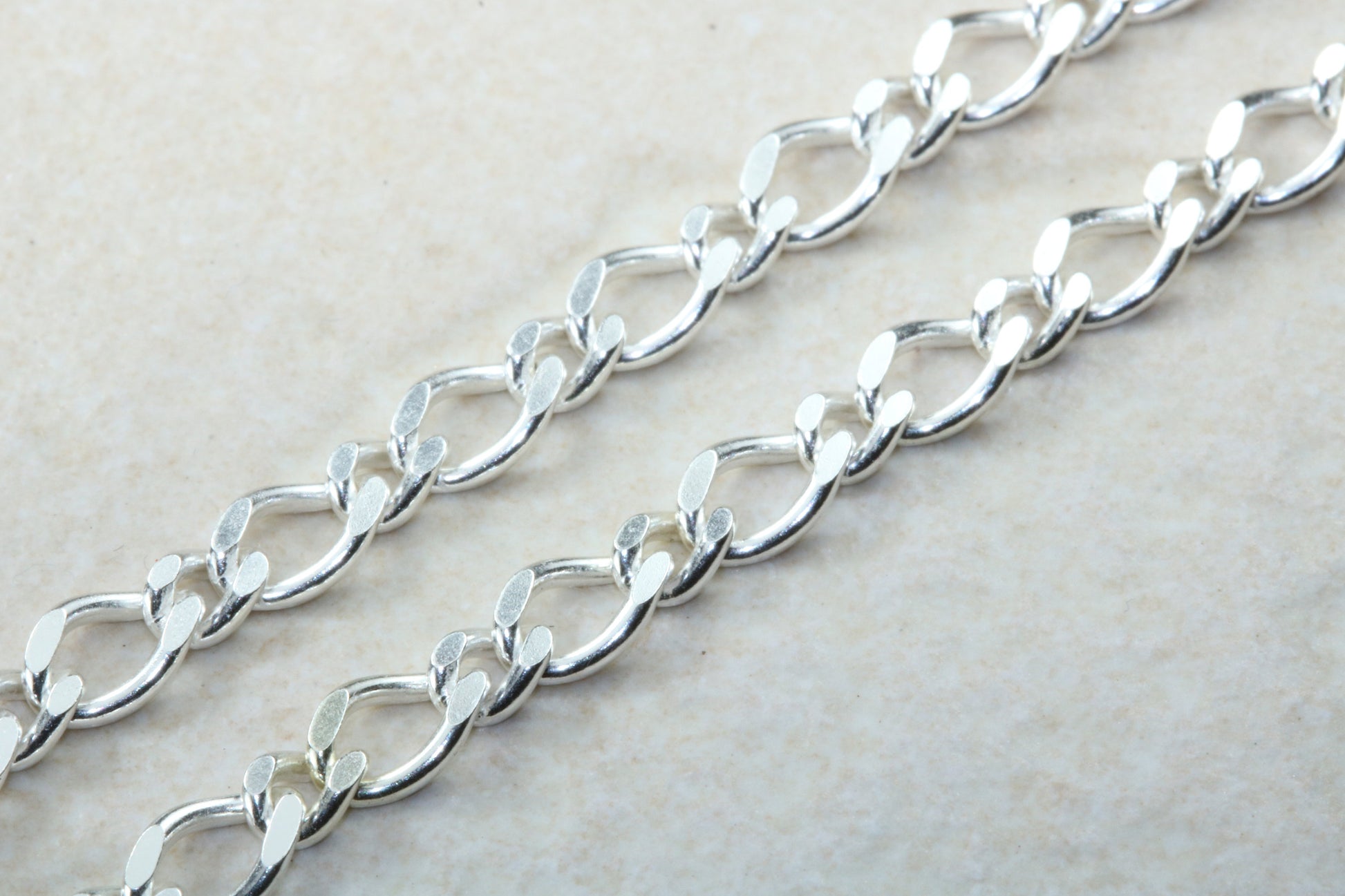 Diamond Cut Flat Curb Chain, Sterling Silver Chain, 22 inch Length