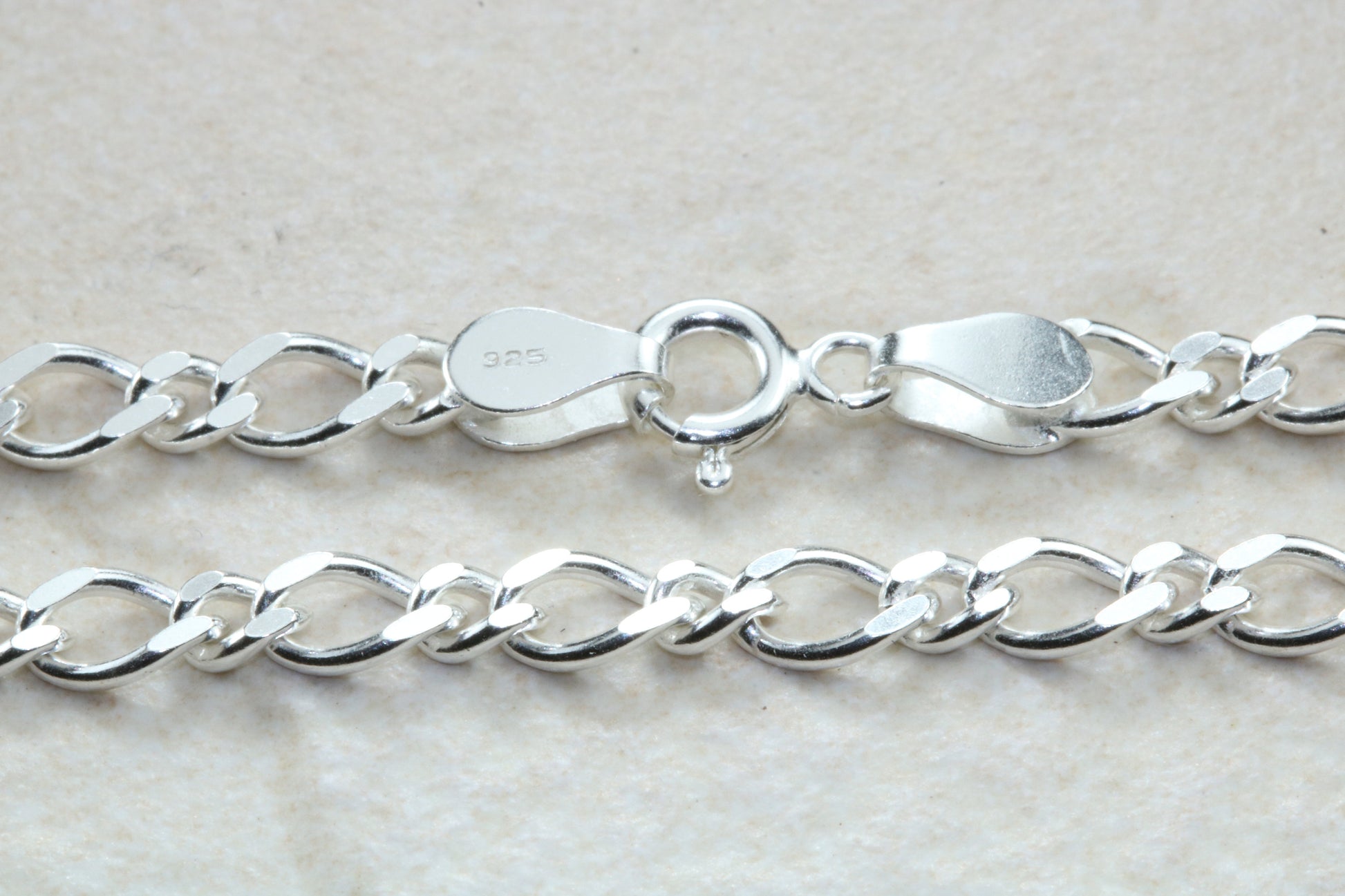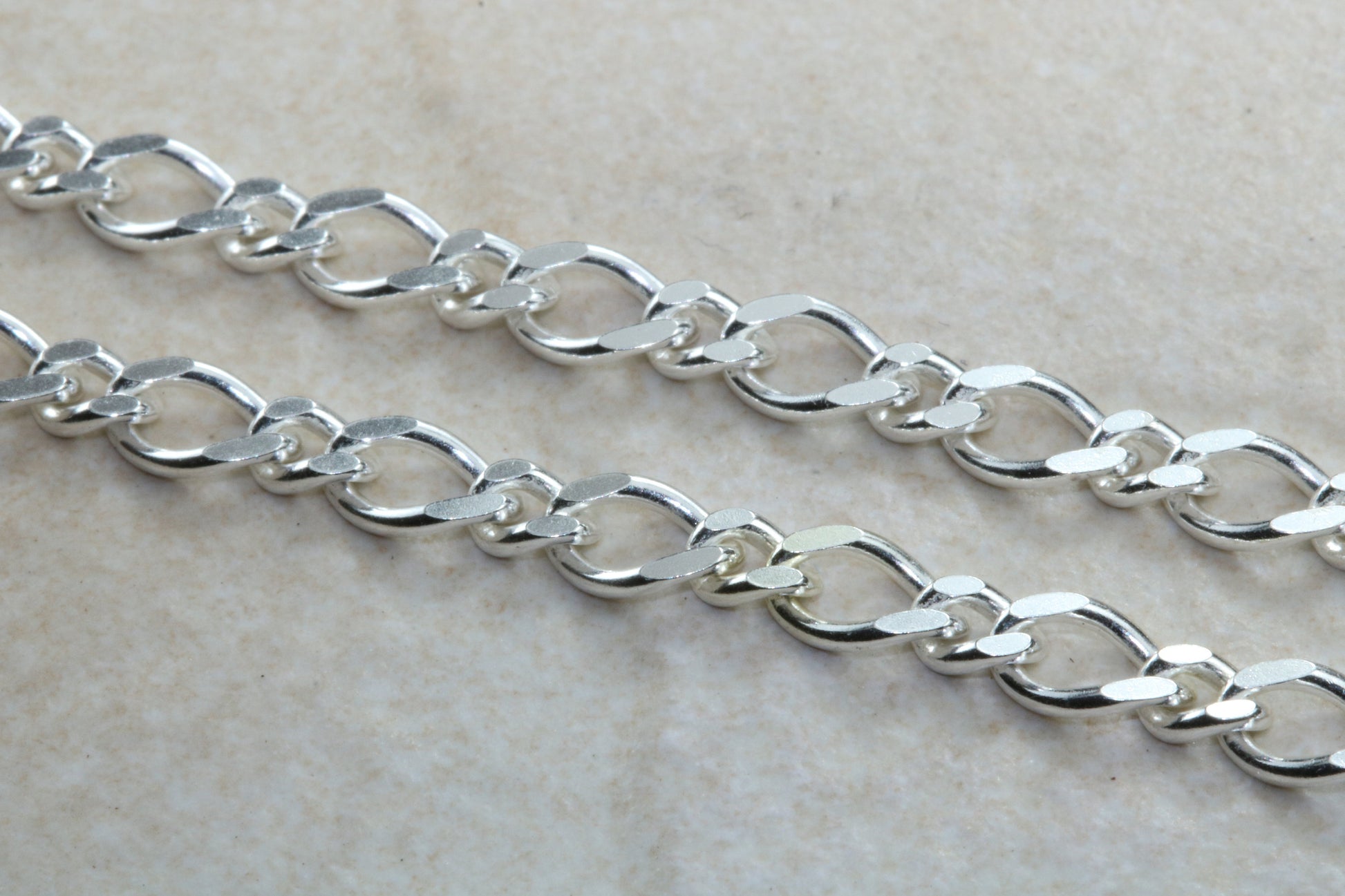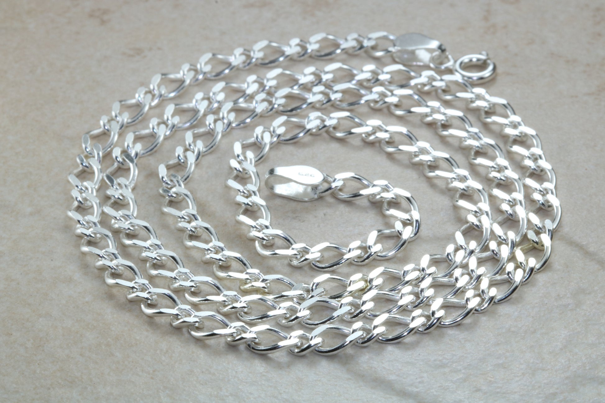 Diamond Cut Flat Curb Chain, Sterling Silver Chain, 22 inch Length