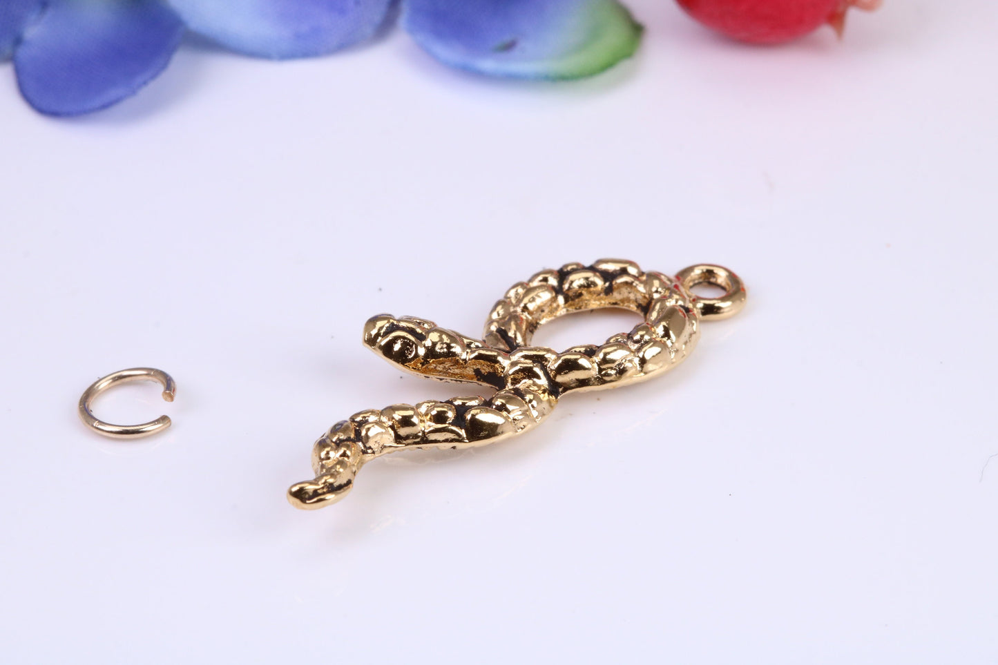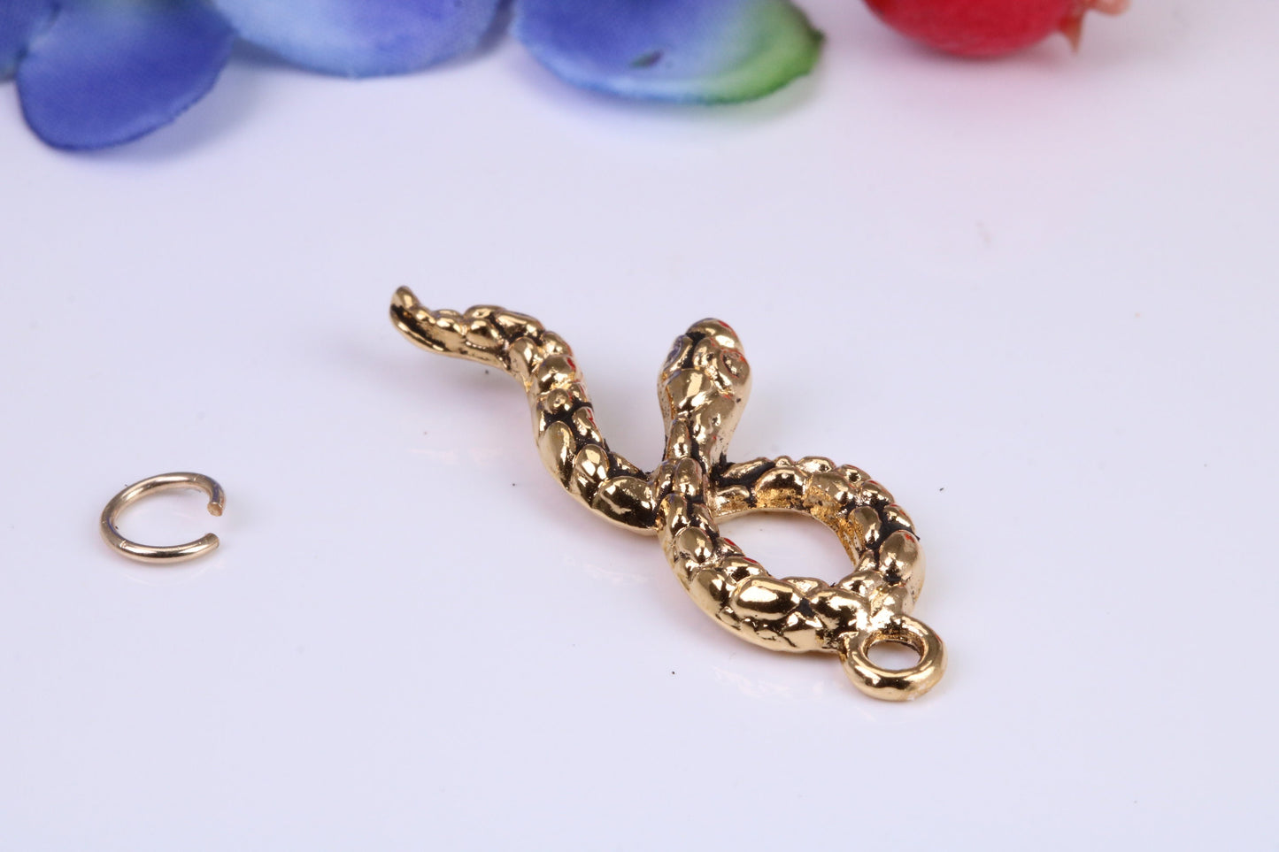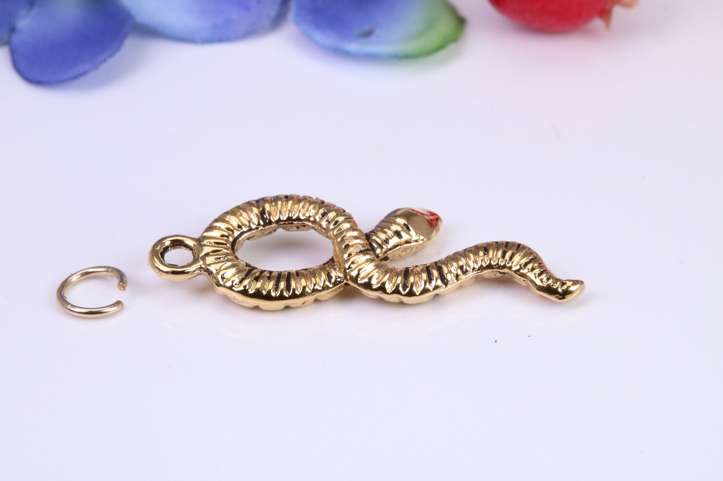 Snake Charm, Traditional Charm, Made from Solid Cast Yellow Gold, British Hallmarked
