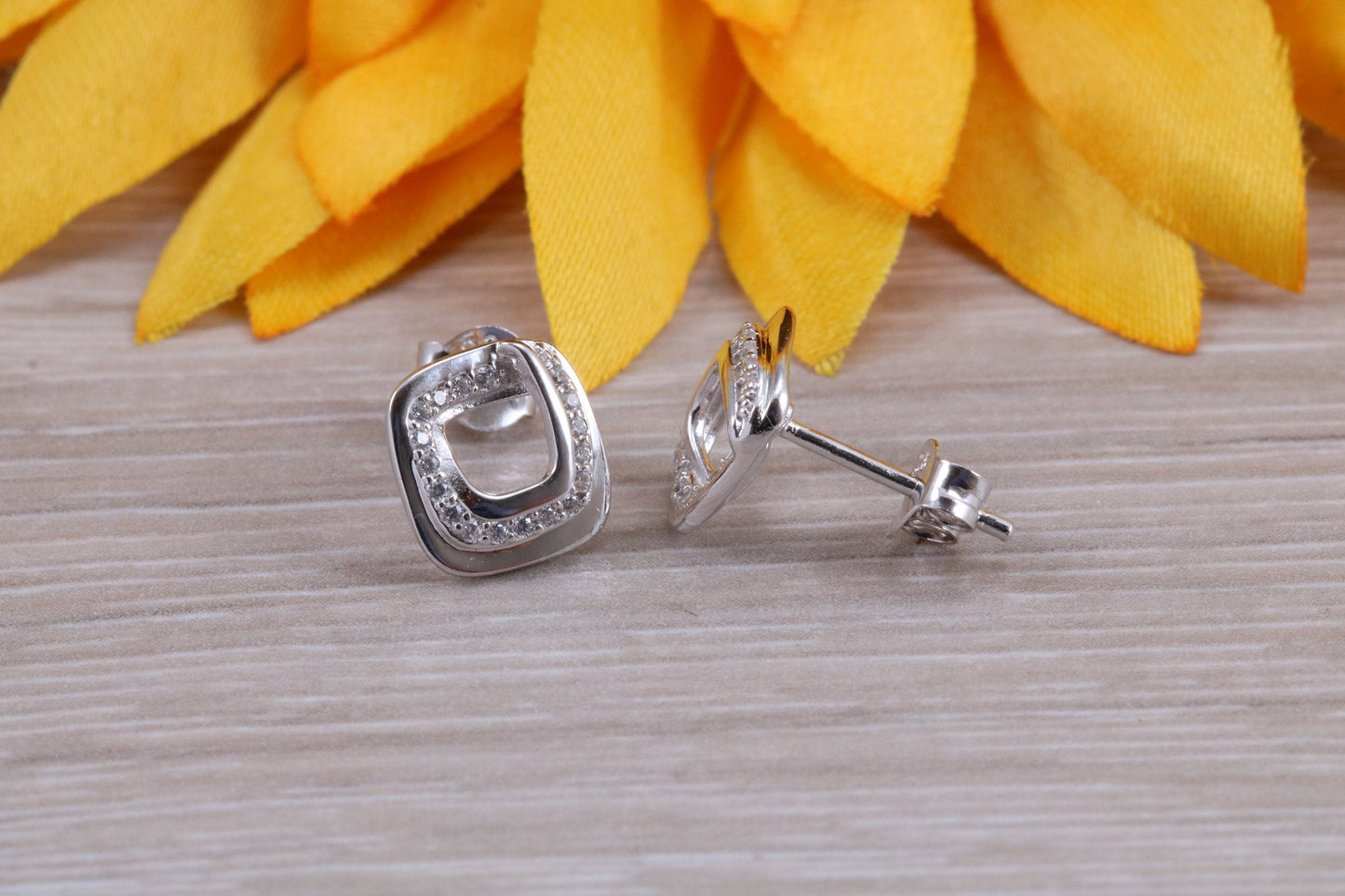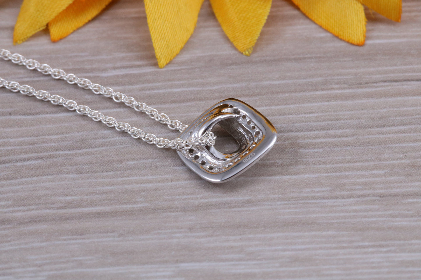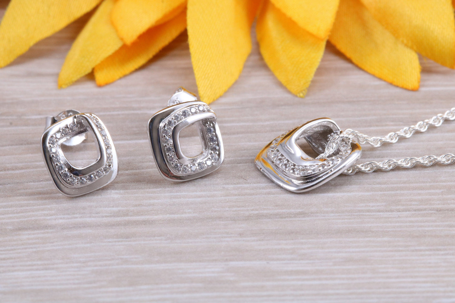 Each studs measures 10 mm x 10 mm square with the pendant measuring 12 mm x 12 mm square together with 16 inch long chain