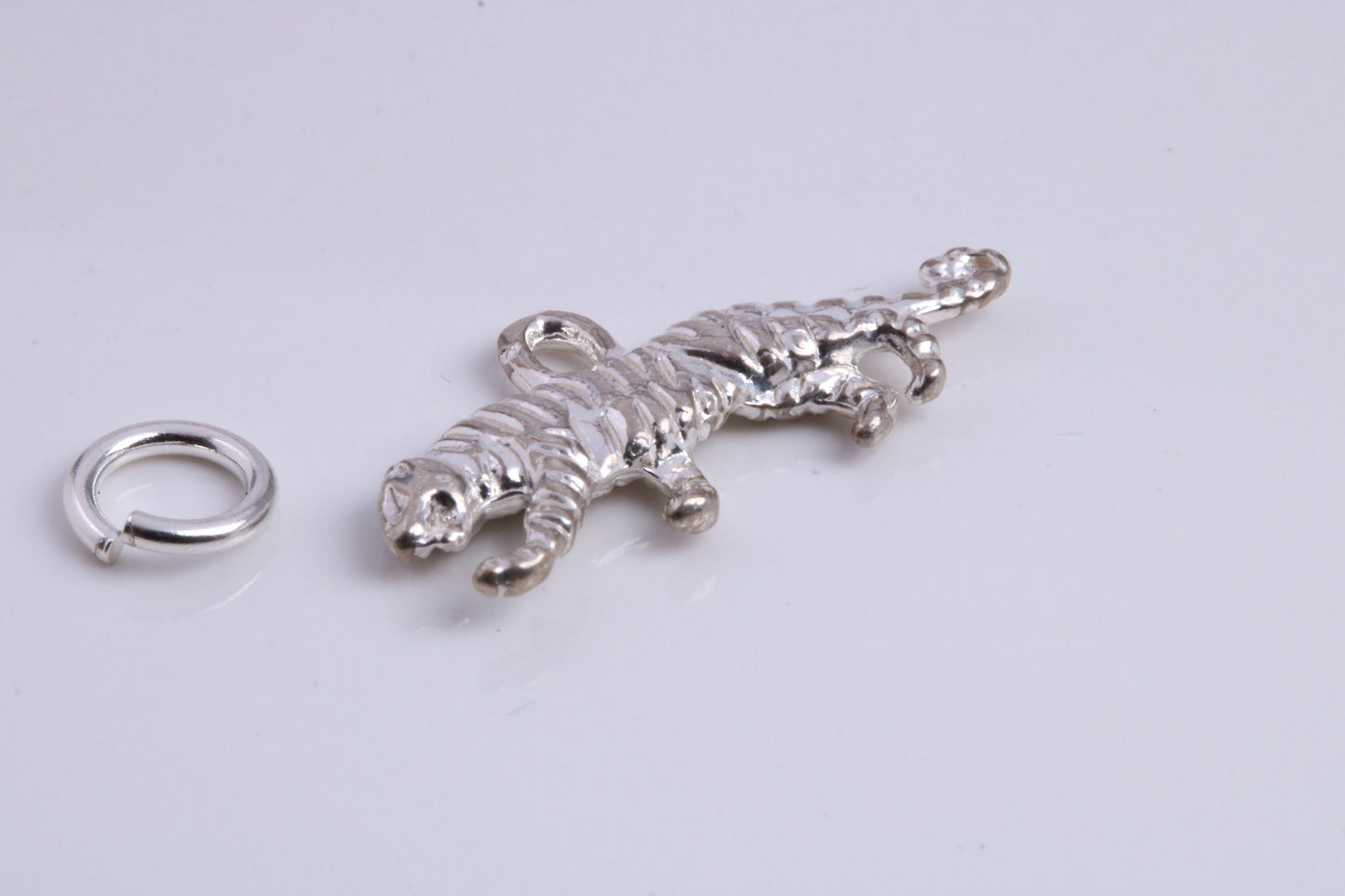Tiger Charm, Traditional Charm, Made from Solid 925 Grade Sterling Silver, Complete with Attachment Link