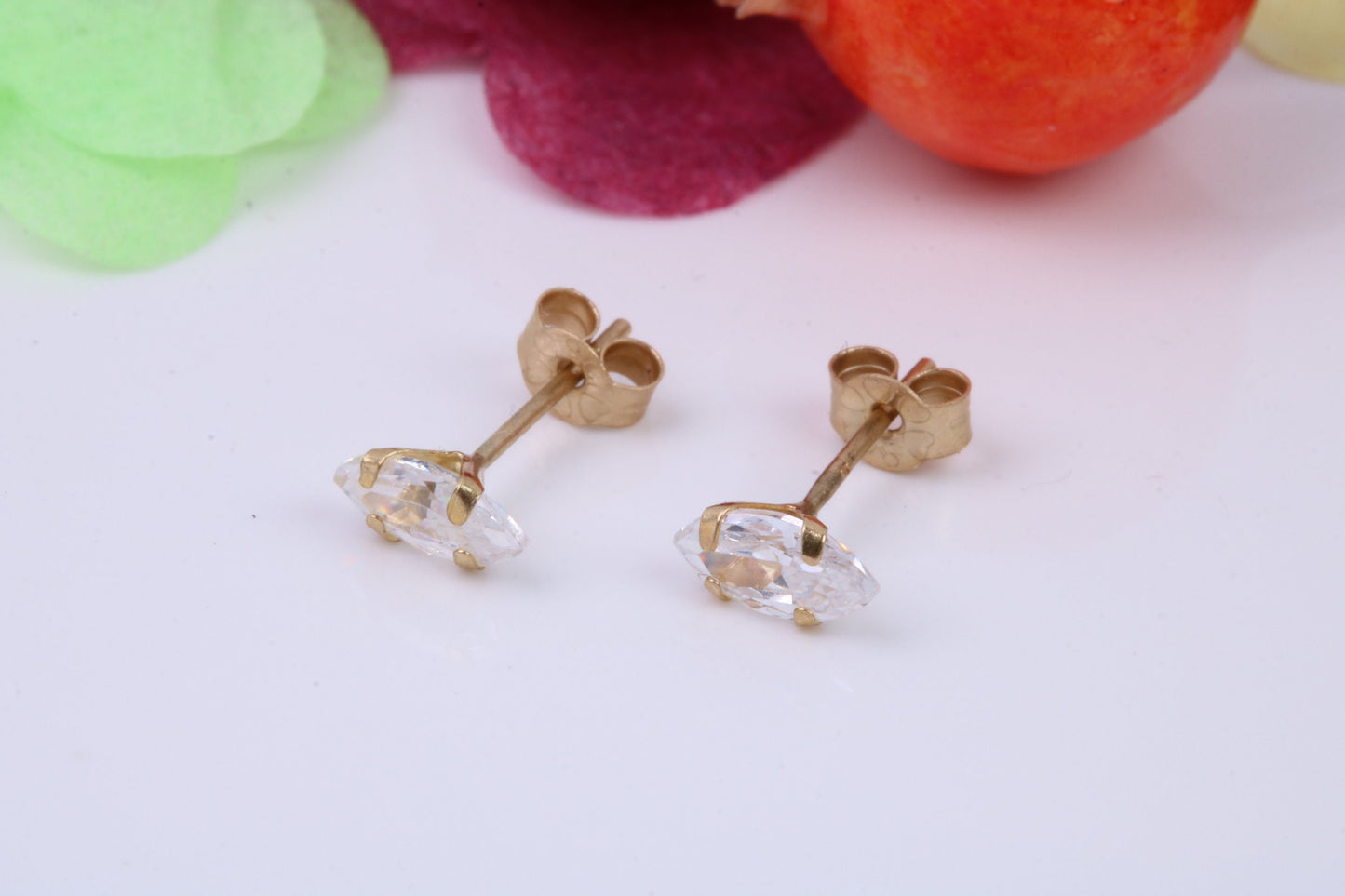 Tiny 5 x 2.50 mm Marquise cut Cubic Zirconia set Stud Earrings, Made from Solid 9ct Yellow Gold