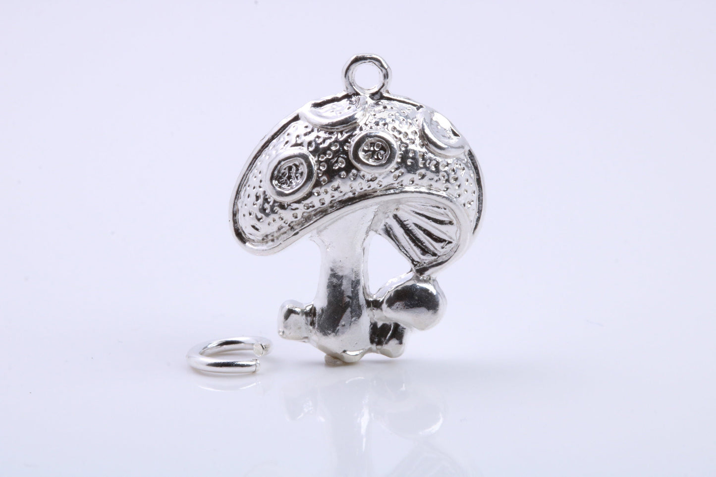 Toadstool Charm, Traditional Charm, Made from Solid 925 Grade Sterling Silver, Complete with Attachment Link