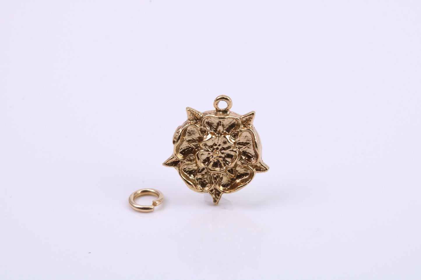 Tudor Rose Charm, Traditional Charm, Made from Solid 9ct Yellow Gold, British Hallmarked, Complete with Attachment Link
