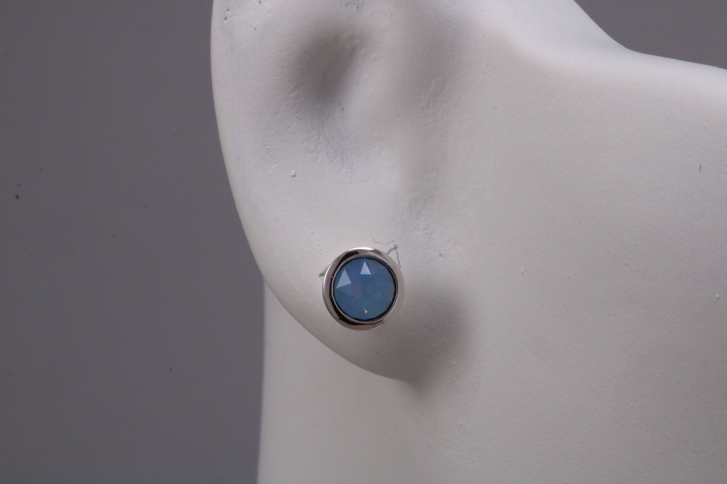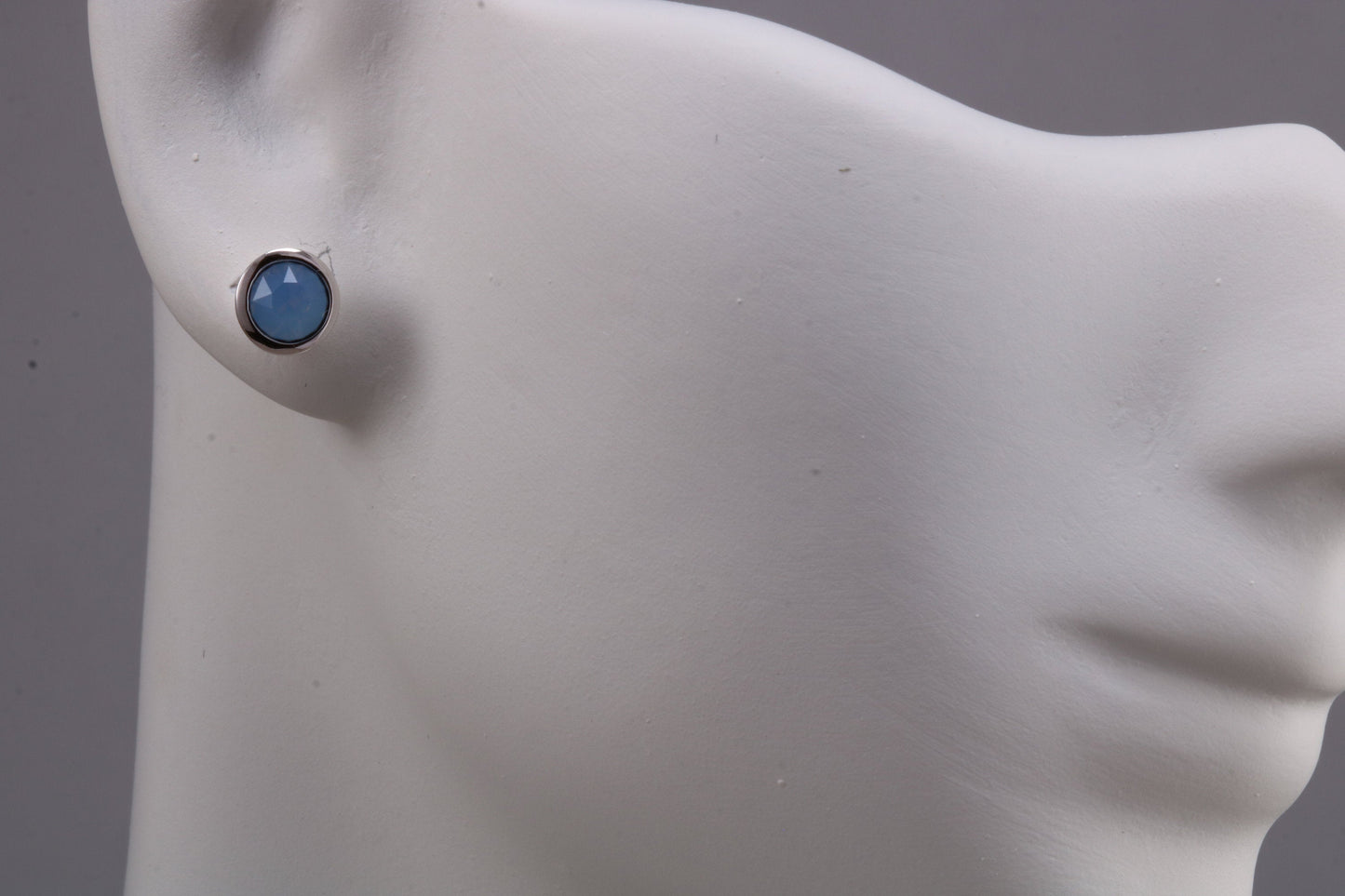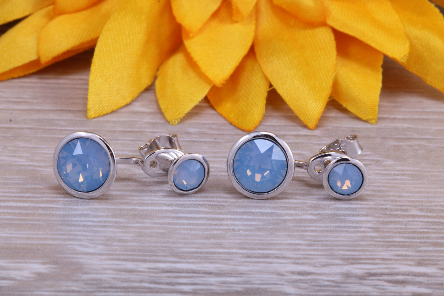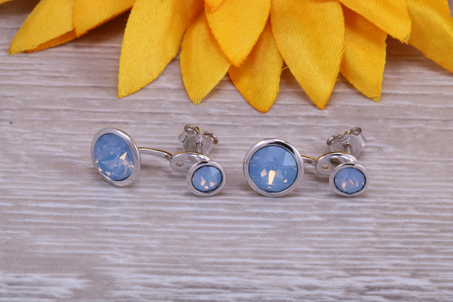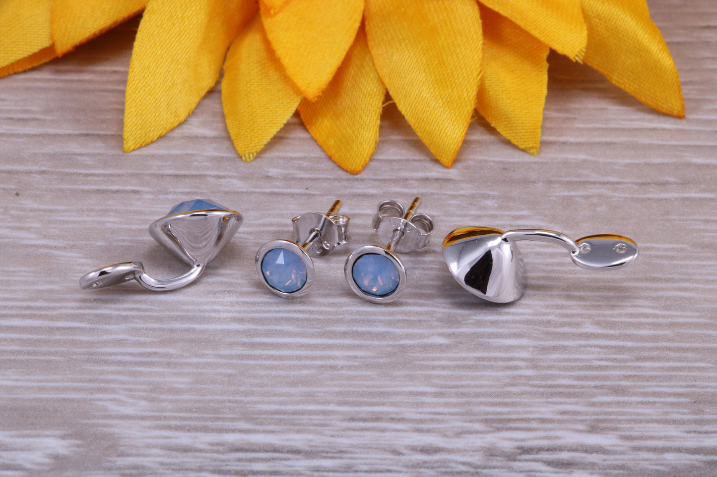 Made from solid 925 grade sterling silver and set with Blue coloured lab created Opals