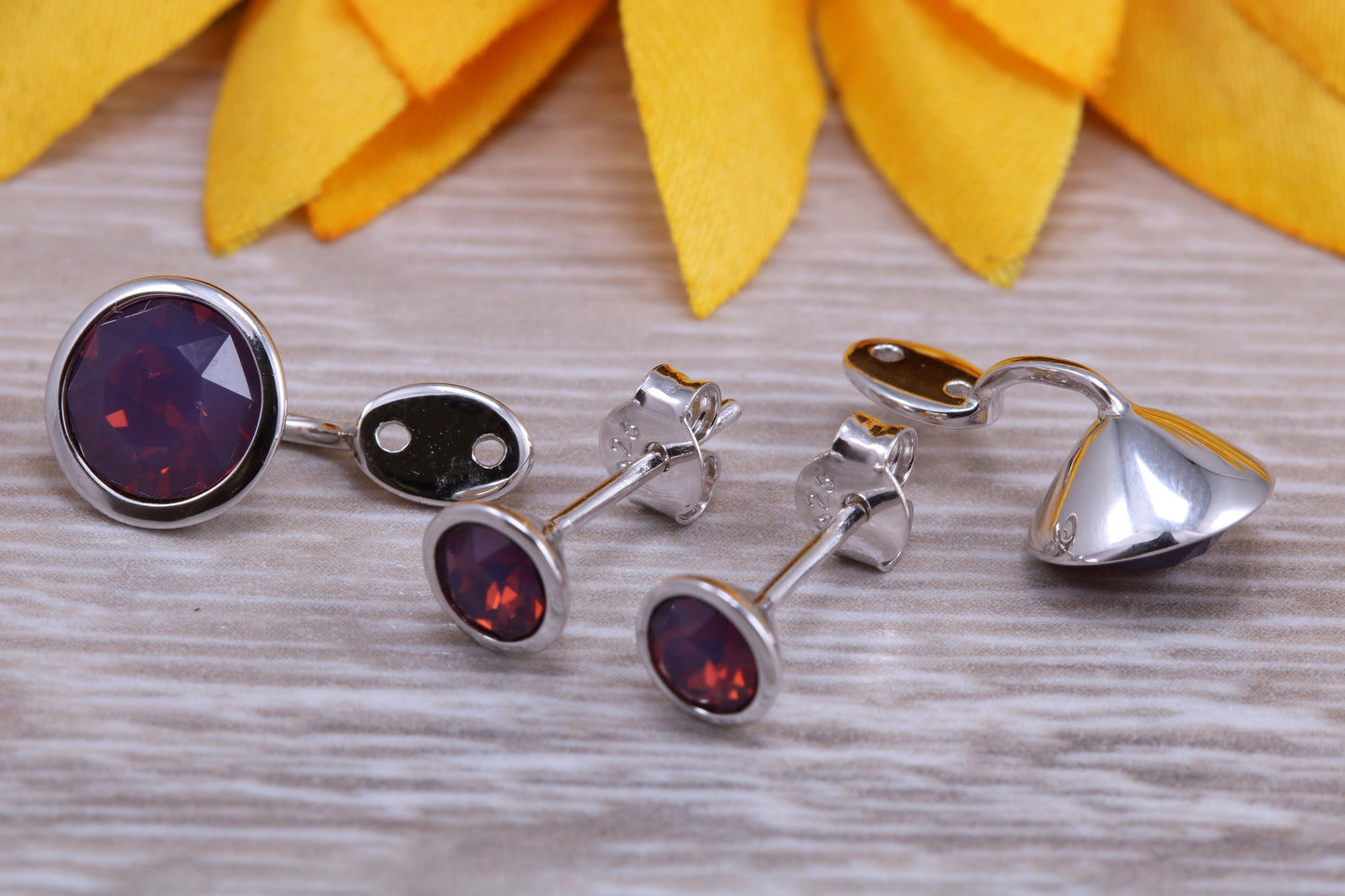 Made from solid 925 grade sterling silver and set with Amethyest colour pacific lab created Opals