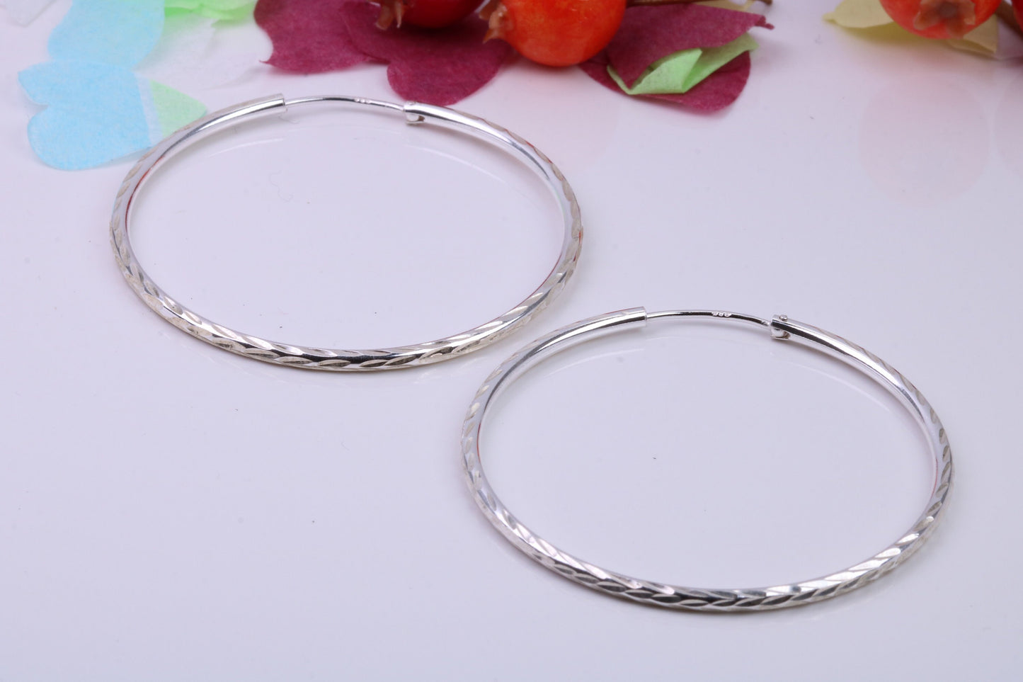Very Large 44 mm Round Diamond cut Sleeper Hoop Earrings Made from 925 Grade Sterling Silver