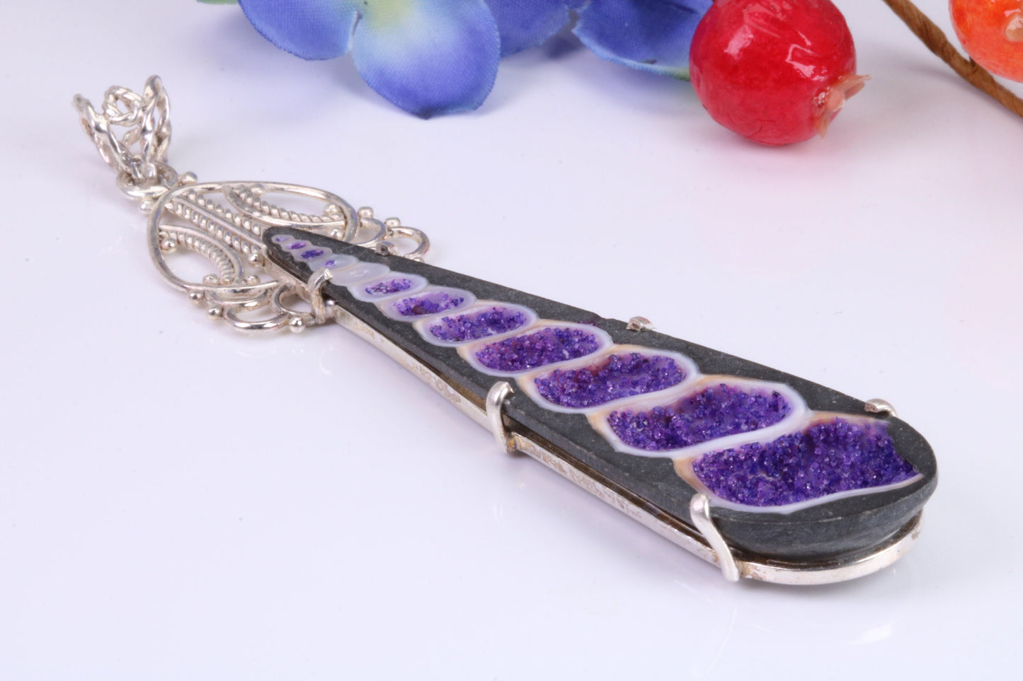 Very dressy and large real Amethyst crystal set pendant