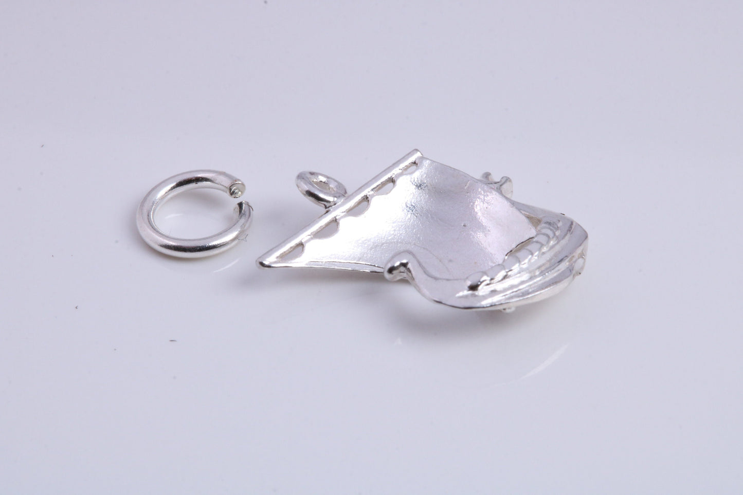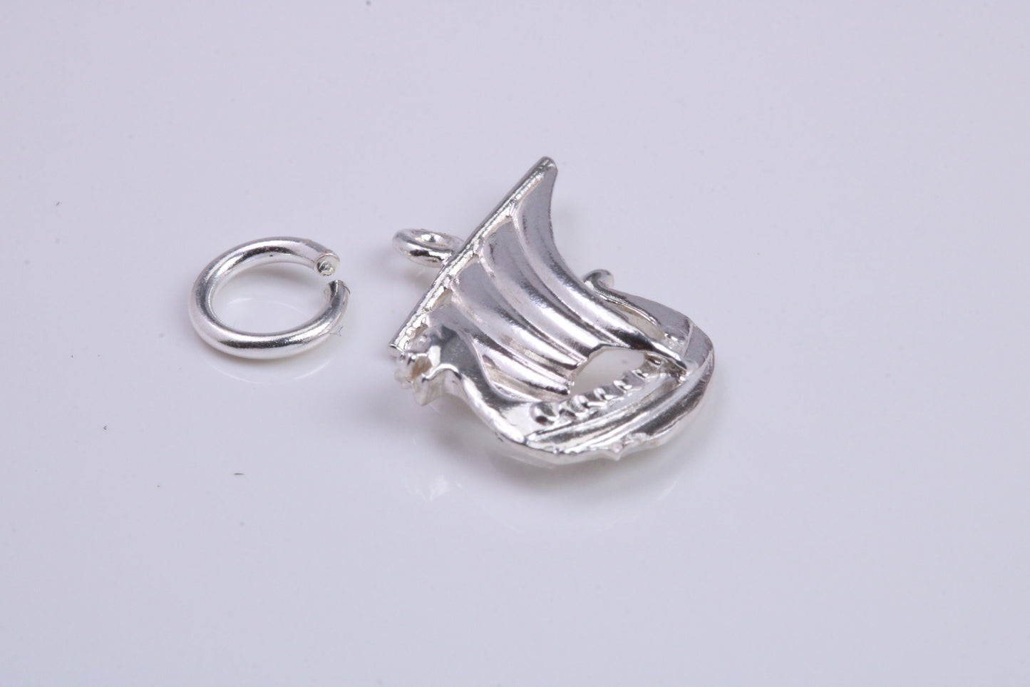 Viking Boat Charm, Traditional Charm, Made from Solid 925 Grade Sterling Silver, Complete with Attachment Link