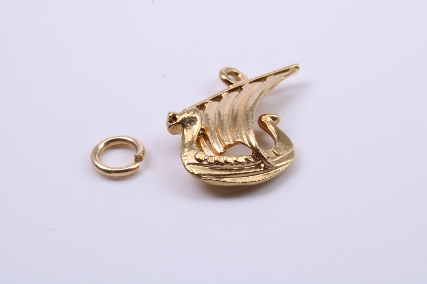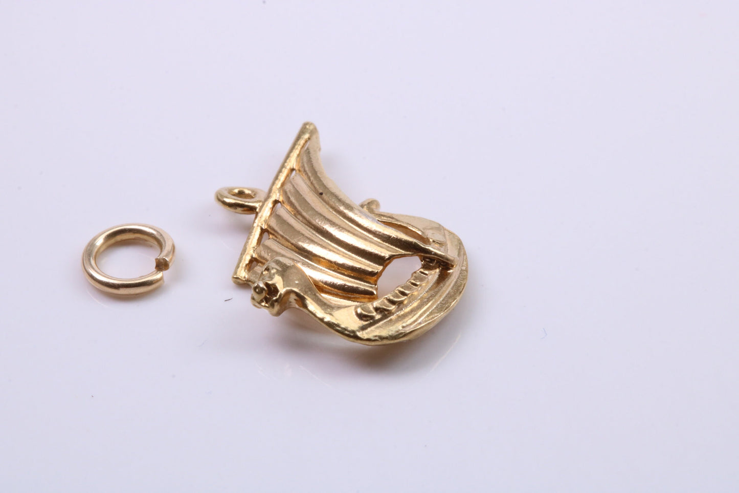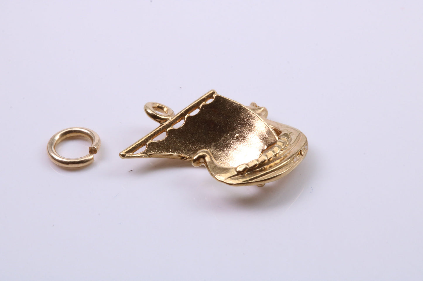 Viking Boat Charm, Traditional Charm, Made from Solid 9ct Yellow Gold, British Hallmarked, Complete with Attachment Link