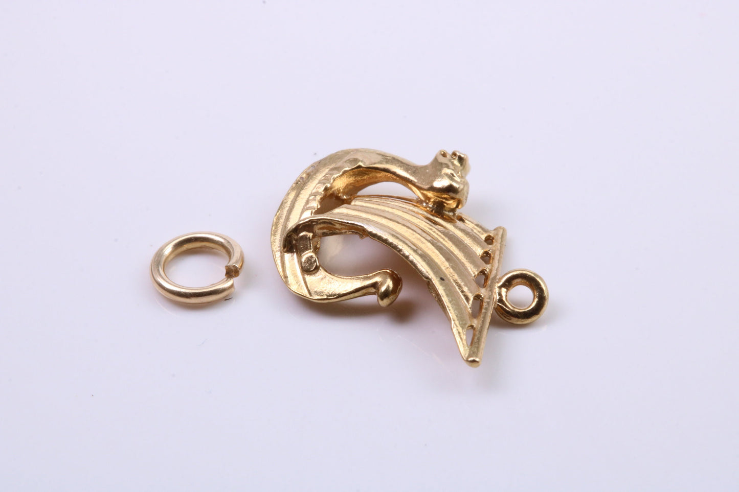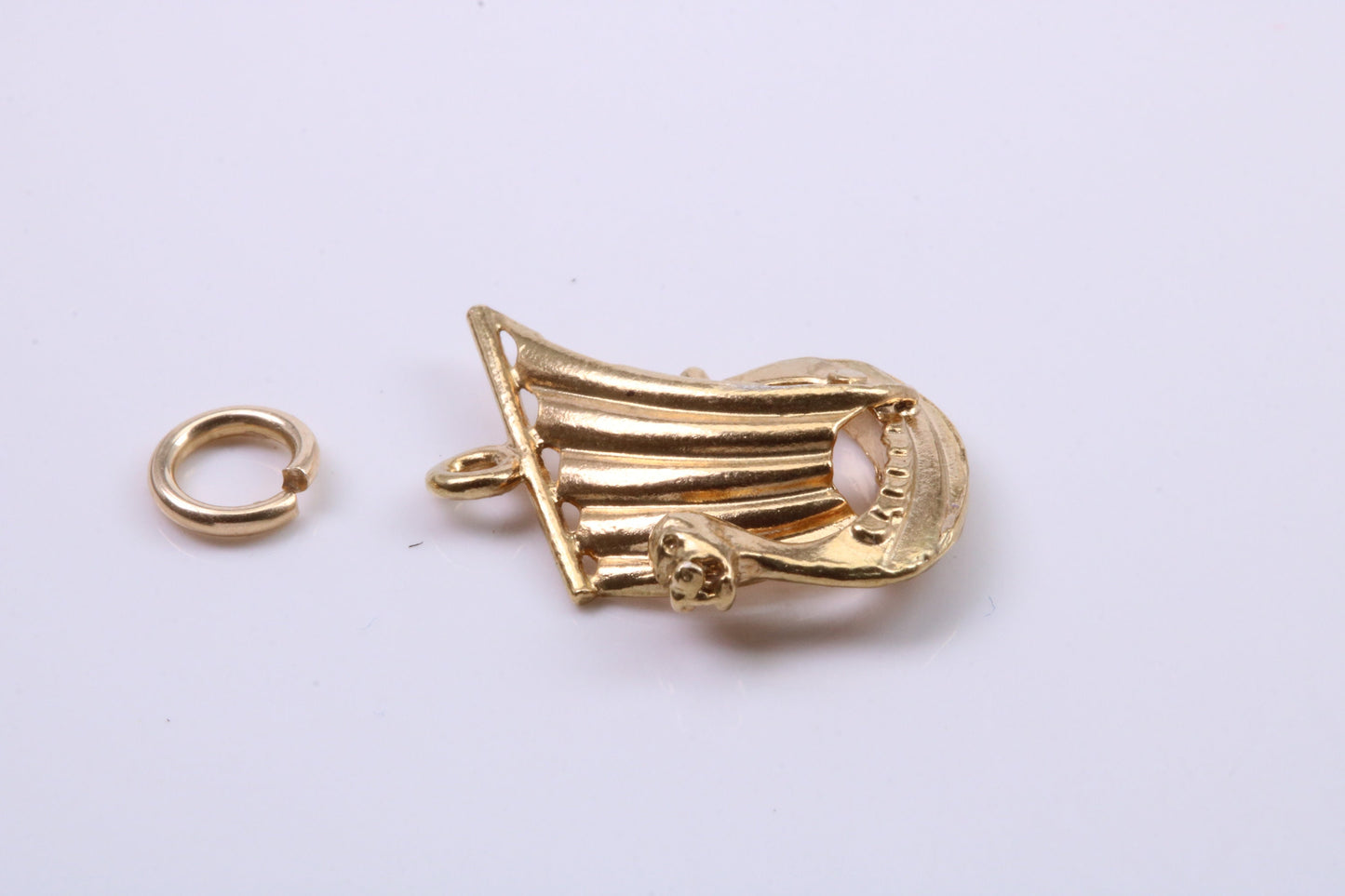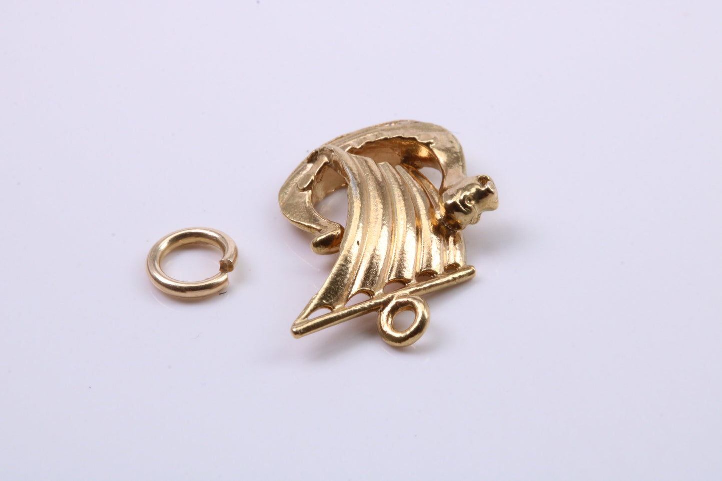 Viking Boat Charm, Traditional Charm, Made from Solid 9ct Yellow Gold, British Hallmarked, Complete with Attachment Link