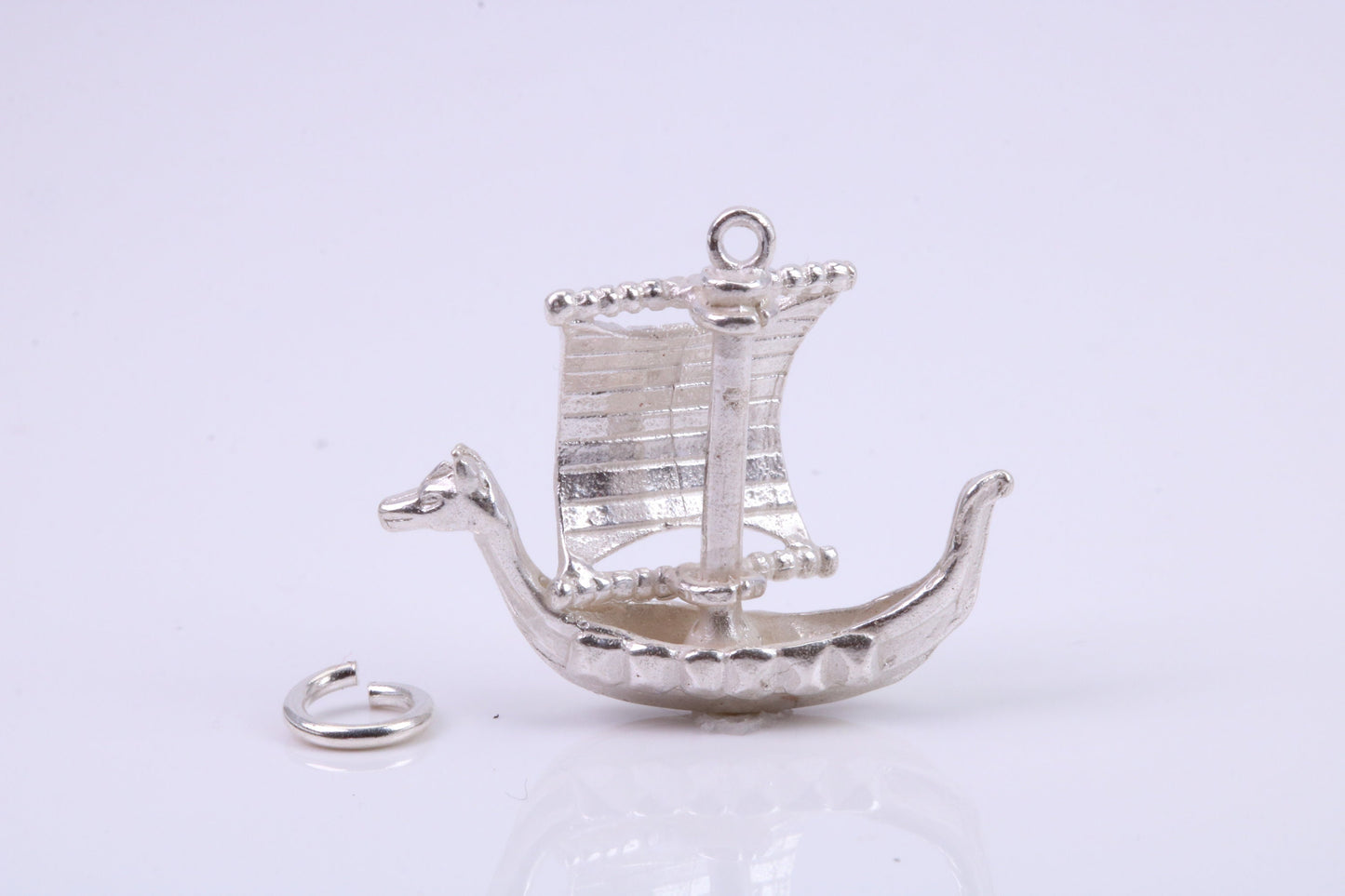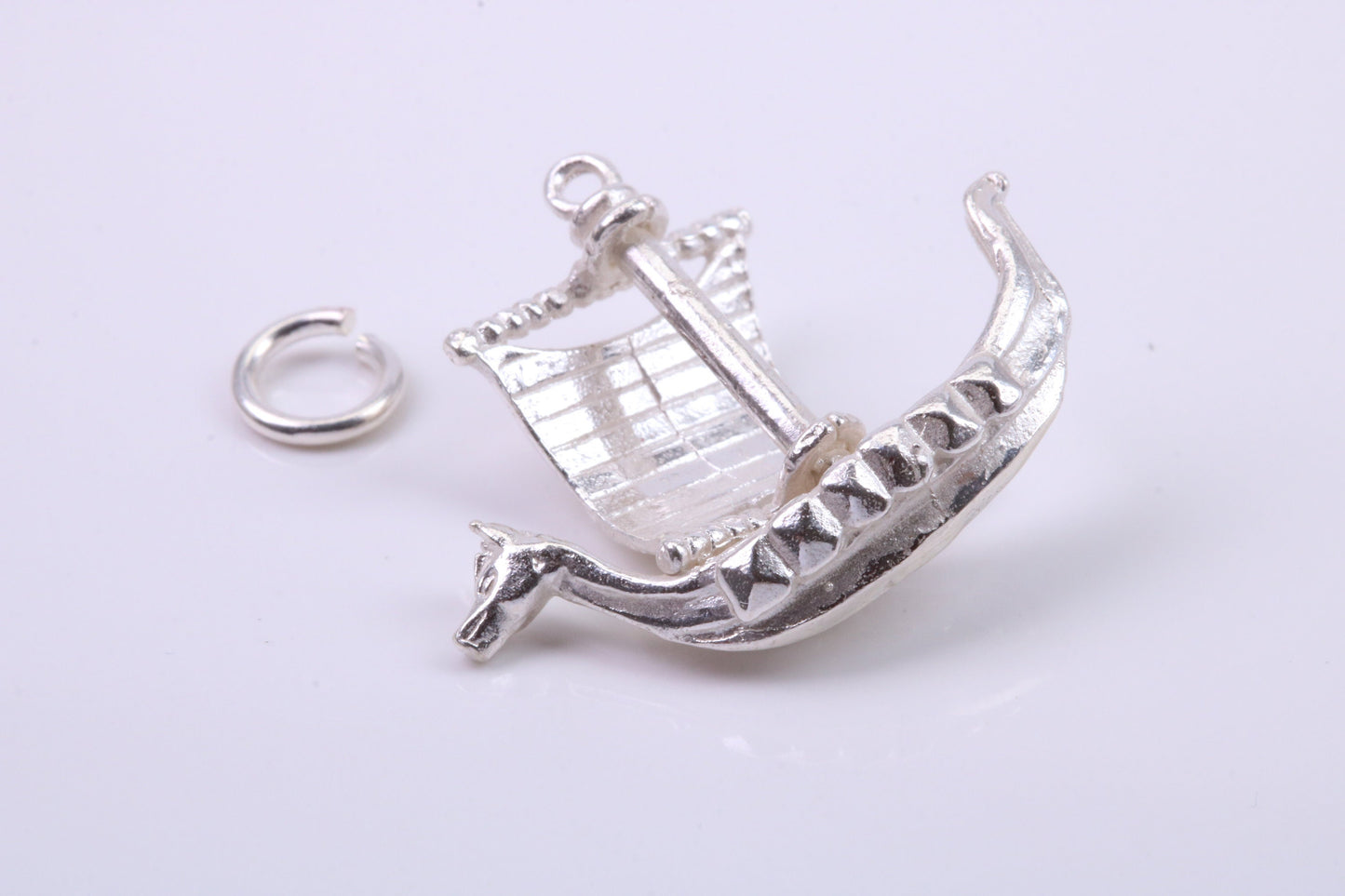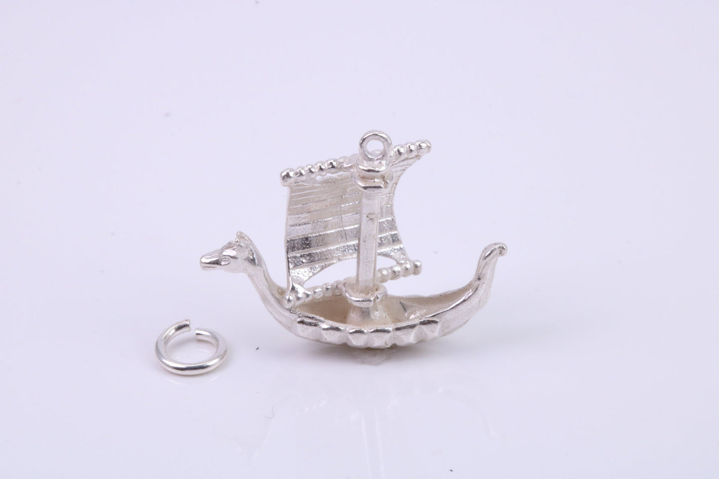 Viking Boat Charm, Traditional Charm, Made from Solid 925 Grade Sterling Silver, Complete with Attachment Link