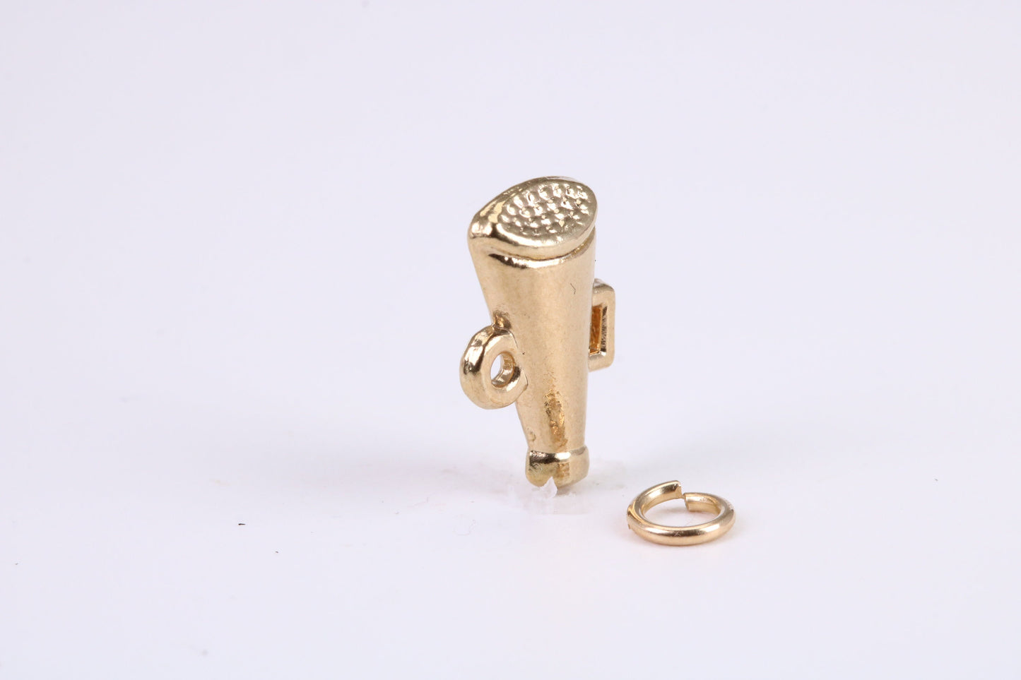 Vintage Megaphone Charm, Traditional Charm, Made from Solid Yellow Gold, British Hallmarked, Complete with Attachment Link
