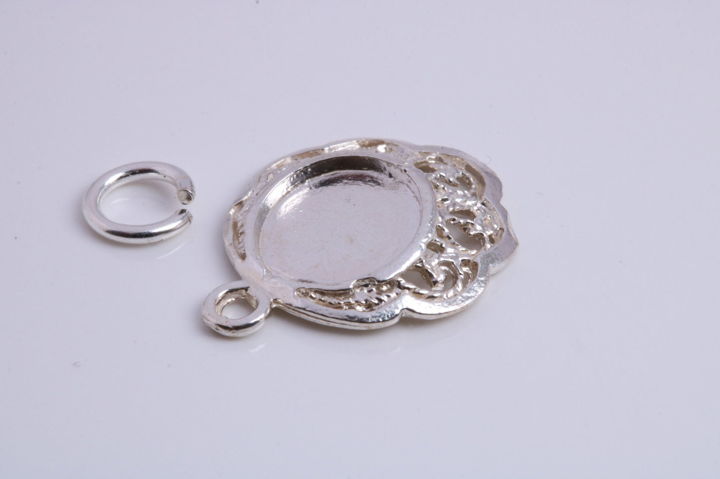 Vintage Mirror Charm, Traditional Charm, Made from Solid 925 Grade Sterling Silver, Complete with Attachment Link
