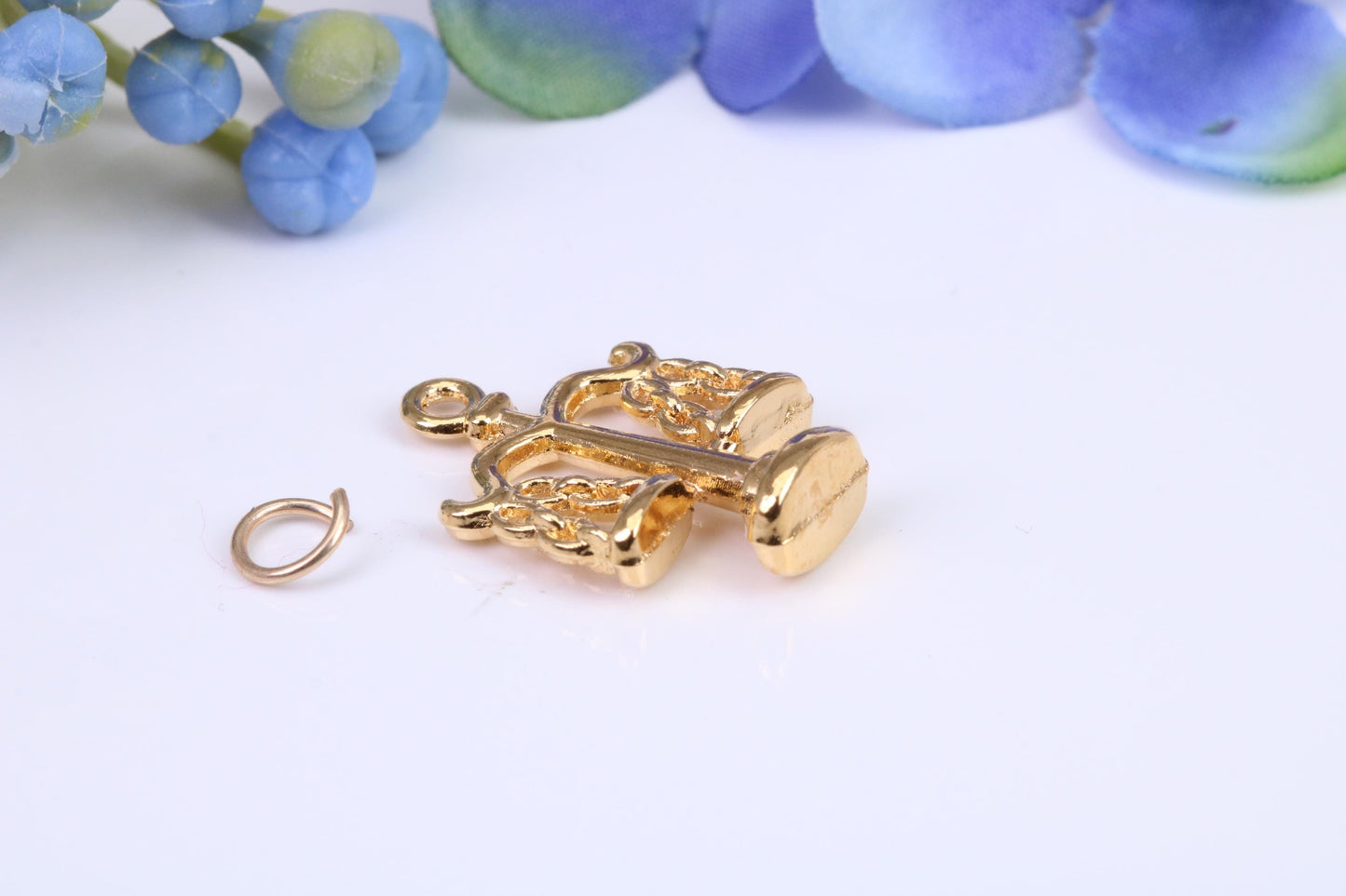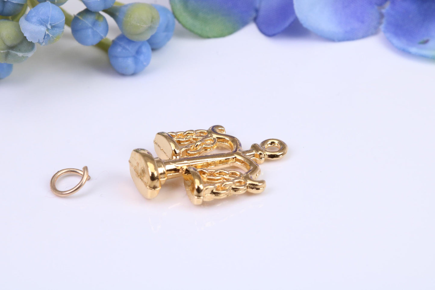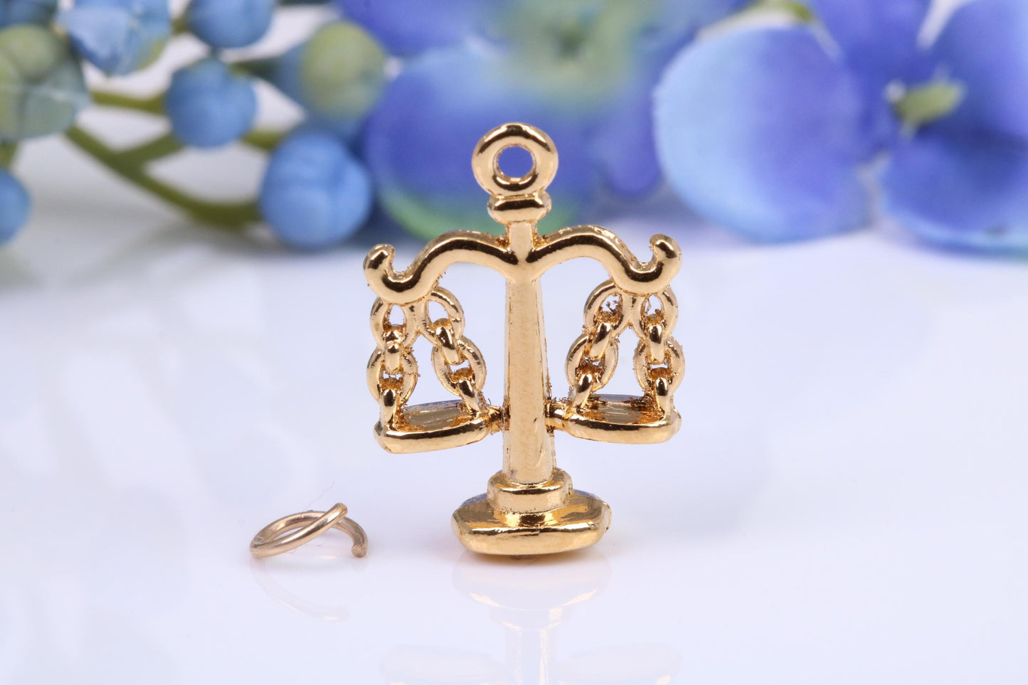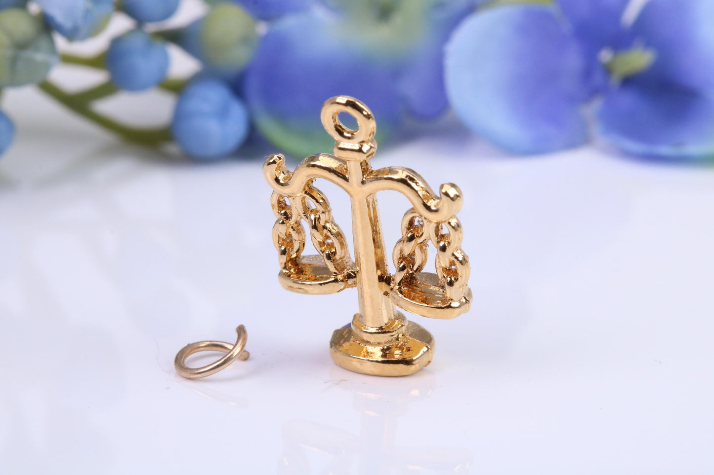 Weighing Scales Charm, Made from Solid Yellow Gold, British Hallmarked, Complete with Attachment Link