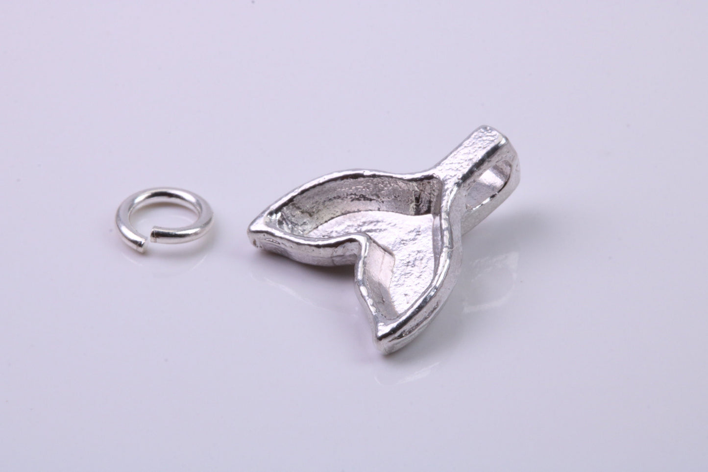 Whale Tail Charm, Traditional Charm, Made from Solid 925 Grade Sterling Silver, Complete with Attachment Link