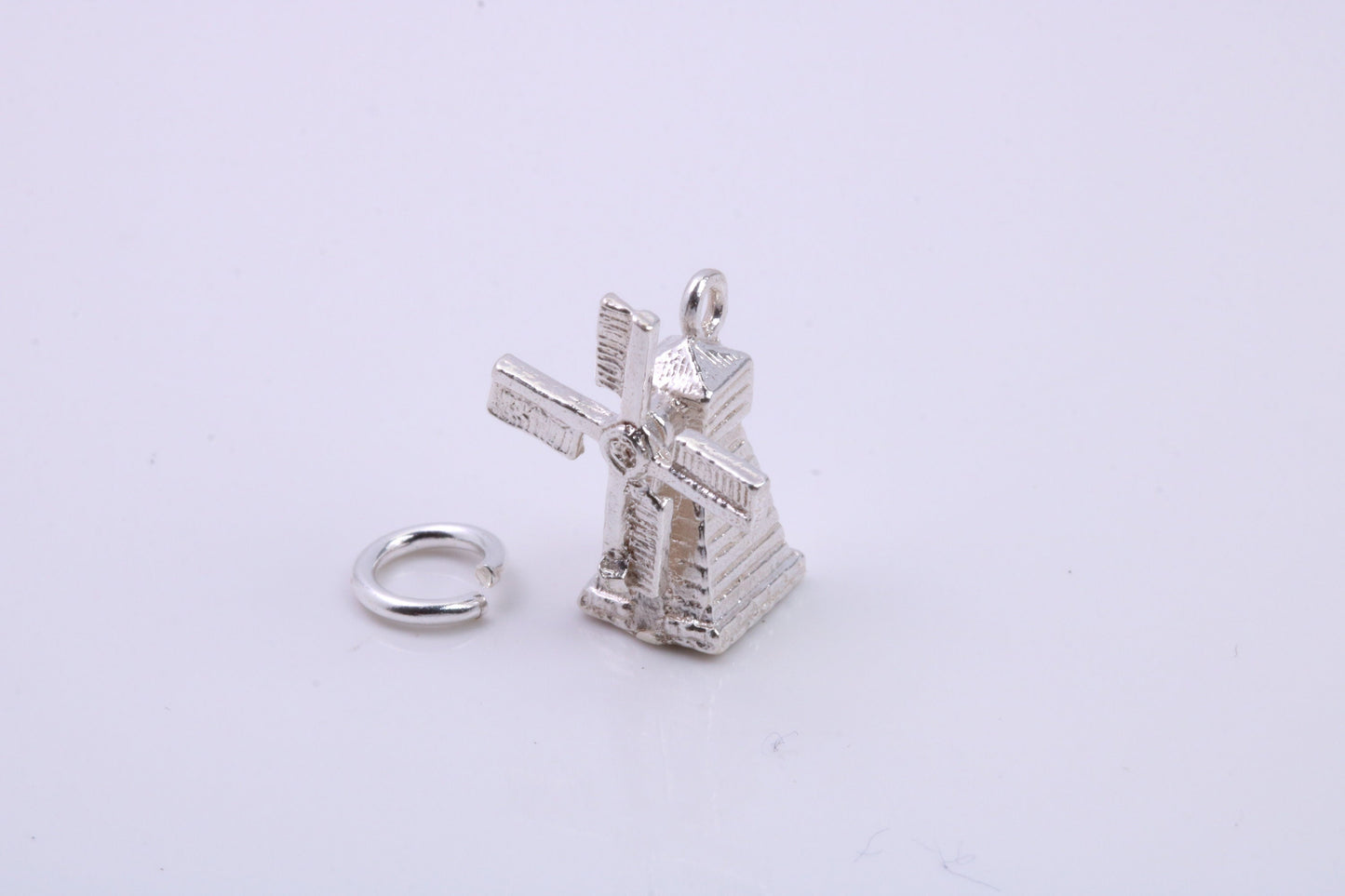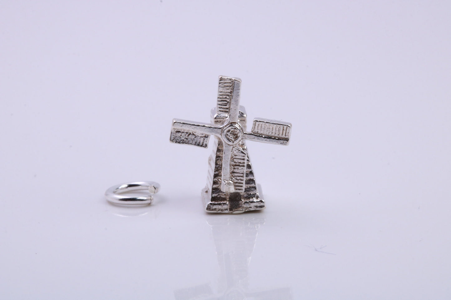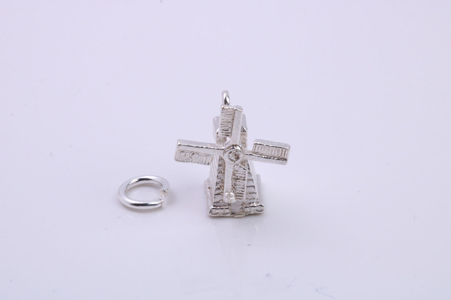 Windmill Charm, Traditional Charm, Made from Solid 925 Grade Sterling Silver, Complete with Attachment Link
