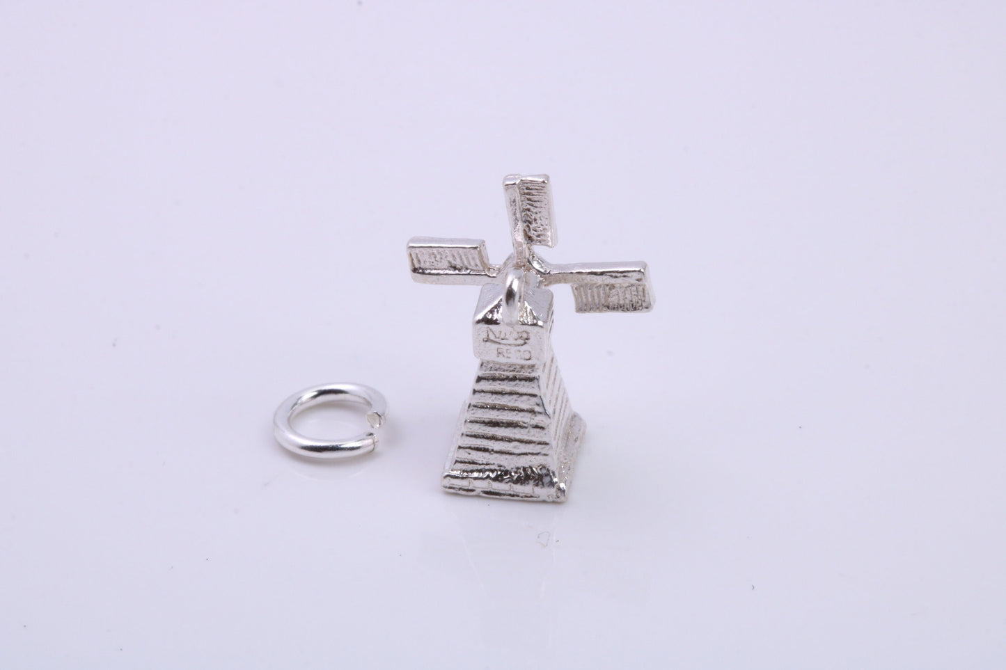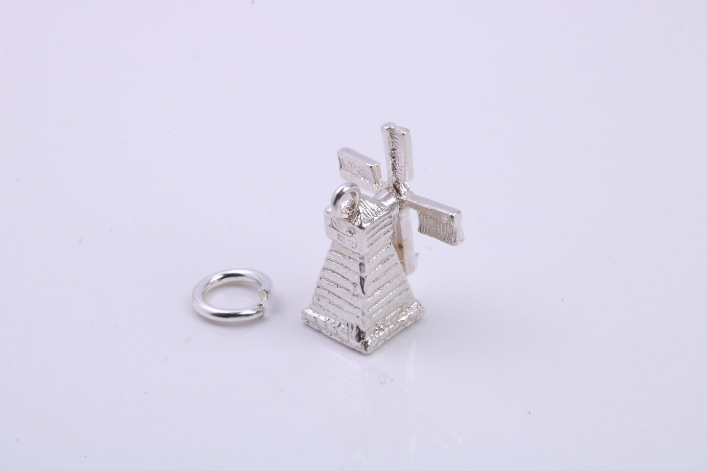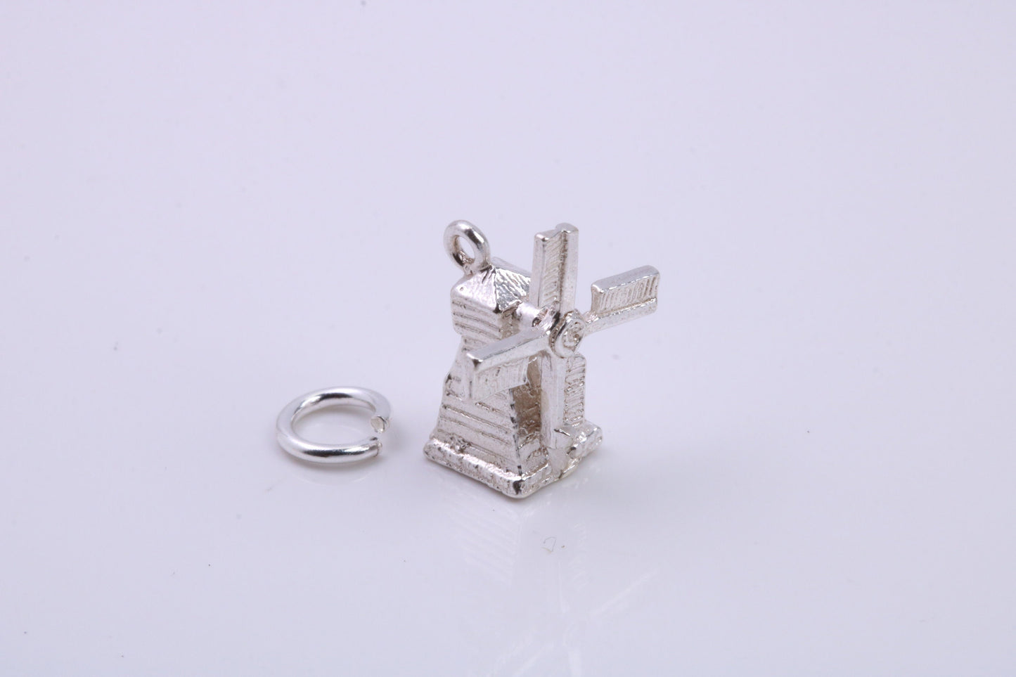 Windmill Charm, Traditional Charm, Made from Solid 925 Grade Sterling Silver, Complete with Attachment Link