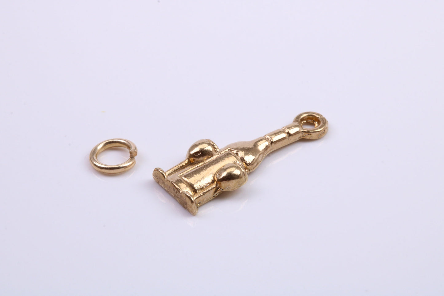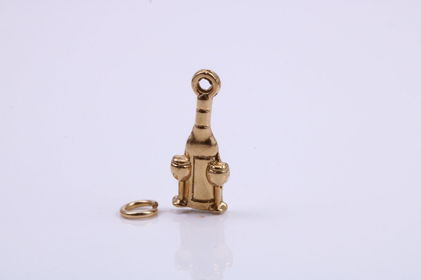 Wine Bottle and Glasses Charm, Made from Solid Cast Yellow Gold, British Hallmarked, Complete with Attachment Link