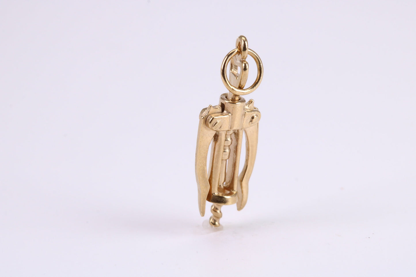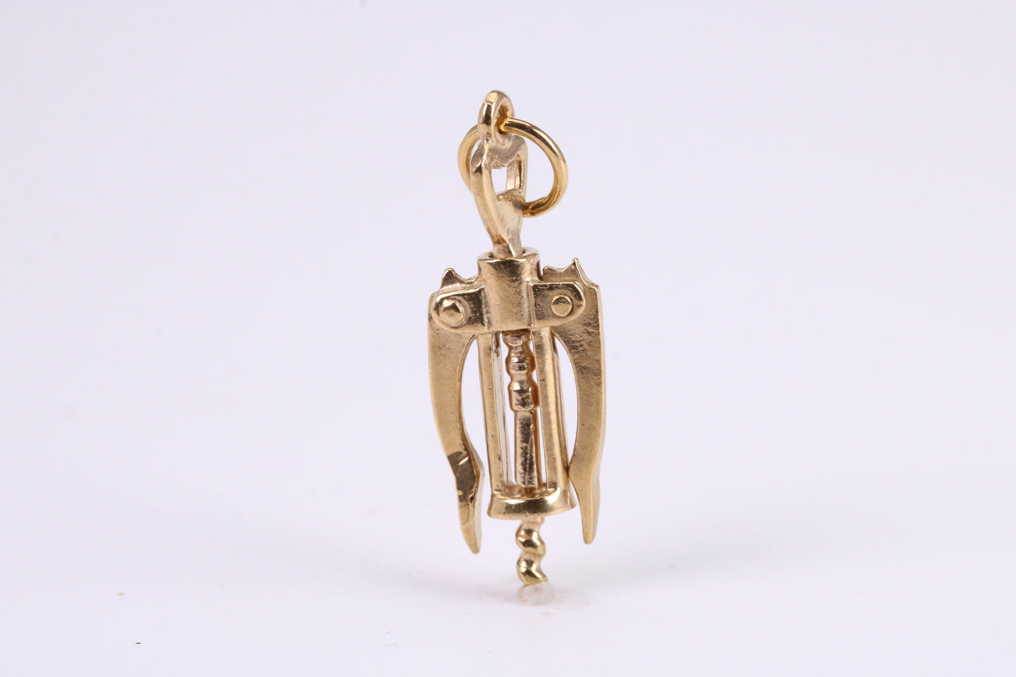 Wine Bottle Opener Charm, Traditional Charm, Made from Solid Yellow Gold, British Hallmarked, Complete with Attachment Link