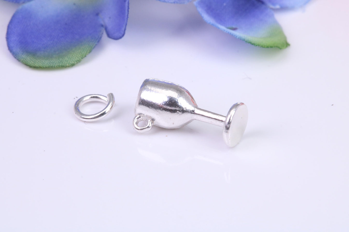 Wine Goblet Charm, Traditional Three Dimensional Charm, Made from Solid Cast Silver